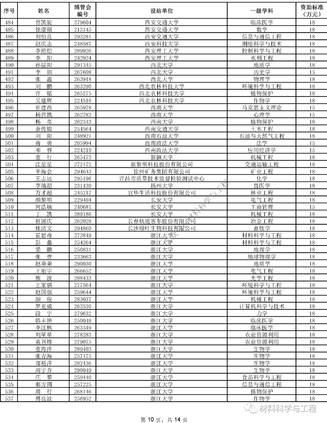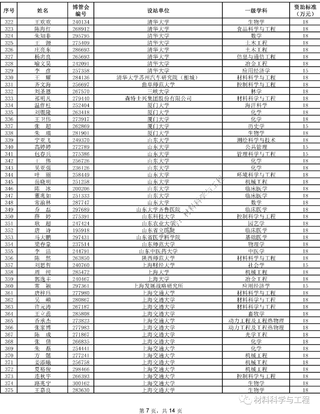 中国博士后科学基金第15批特别资助(站中)