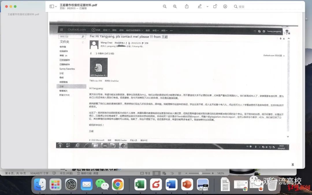 ▲王超给黄阳阳发的邮件