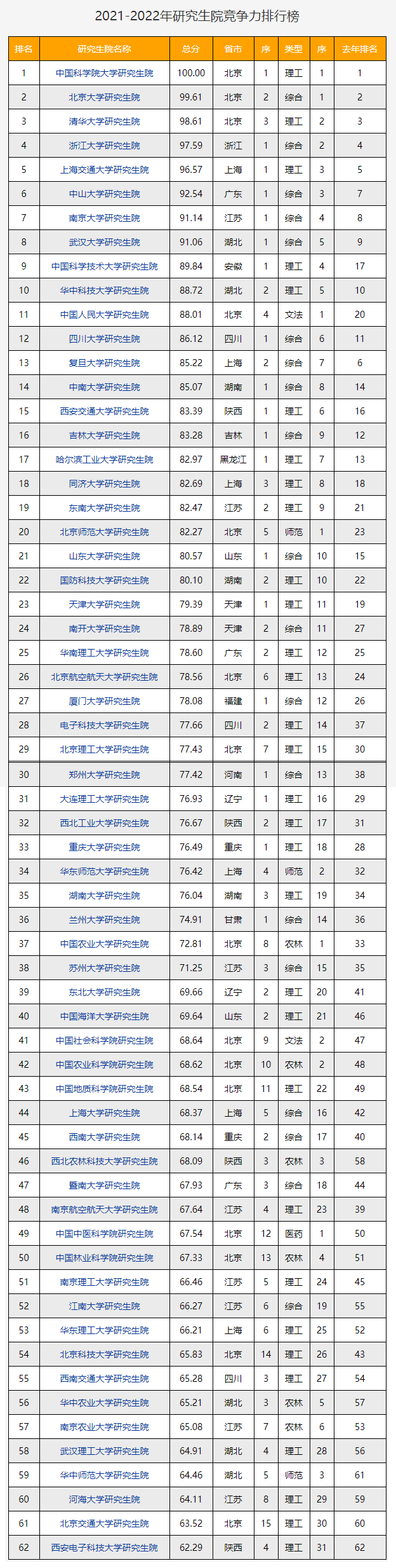 1、从地区来看:上榜的62所院校中,北京独占15所,遥遥领先;江苏8所、上海6所、湖北5所,分列其后,这些也是名校最多、报考人数最密集、竞争最激烈的地区;