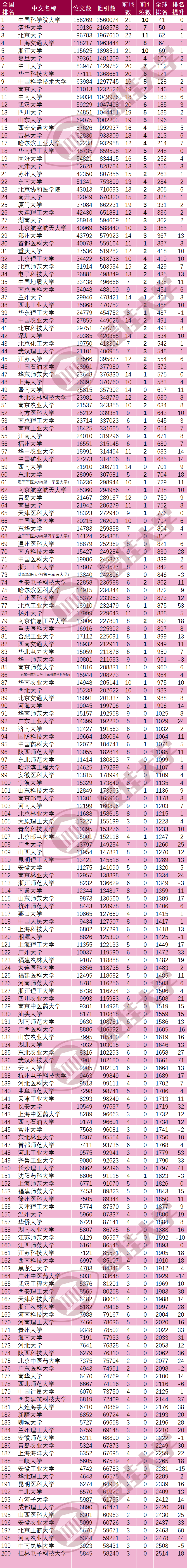 全国高校ESI排名情况