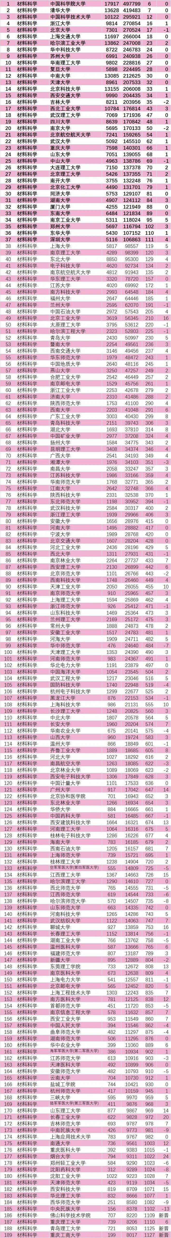 全国材料科学学科ESI上榜高校名单