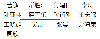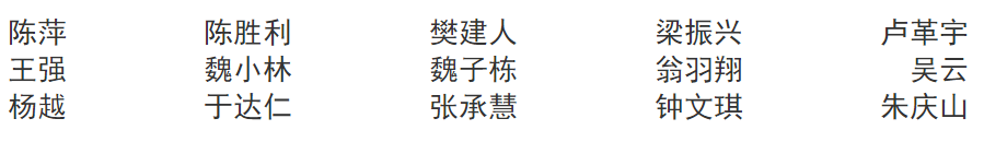 陈丰原 陈国强 陈凯先 崔儒涛 丁克 董家鸿 高飞 高光侠 高绍荣 侯凡凡 胡清华 李佳 李满祥 林安宁 刘友华 祁海 阮雄中 帅克 松阳洲 宋伟宏 汤楠 陶娟 滕皋军 王福生 王前飞 王以政 魏海明 徐德祥 阎锡蕴 杨宝峰 叶玲 于洪涛 余鹰 袁钧瑛 袁正宏 张明杰 张旭 张玉峰 周欣