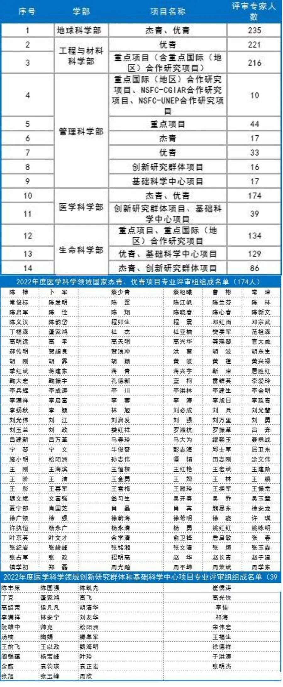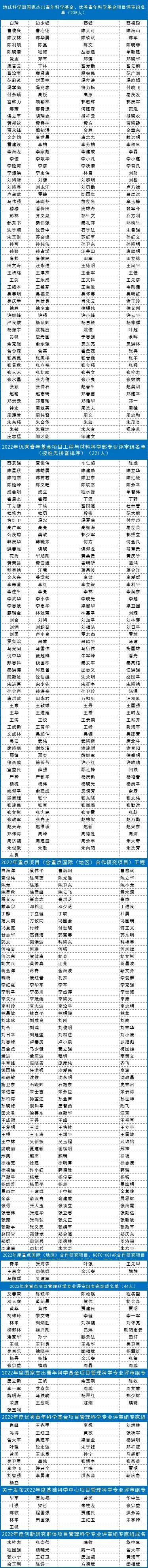 近日,自然科学基金委各学部陆续公布2022年度项目评审专家名单。