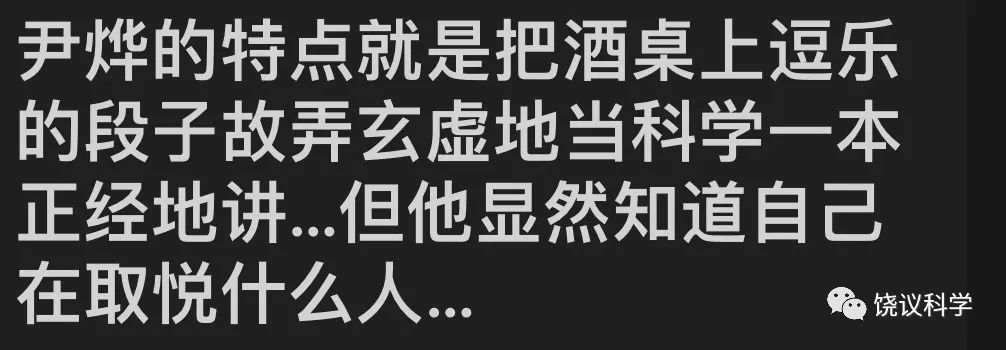 3)如果看了以上视频后继续认为尹烨没有问题,请不要与“饶议科学”的小编对话,因为后者只是义务维持公号,而他/她们没有义务、也没有能力改变任何人的智力。