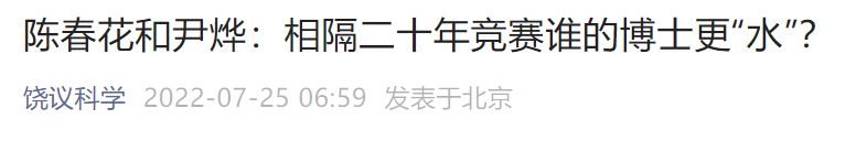 7月25日,饶毅再发文《陈春花和尹烨:相隔二十年竞赛谁的博士更“水”?》,直指尹烨水“”博士文凭,直接将尹烨的博士文凭和最近因为买野鸡博士文凭而处于风头浪尖的陈春花对比,文中直言,