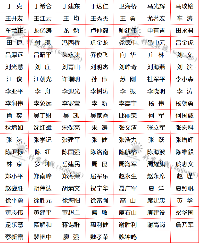 黄应平,鲍红丽,邓贤明,范代娣,吴立新,杨光富,陈立桅,范青华,陈敏东,冯钰锜,席振峰,张登松,蒋尚达,张学记,黄汉民,张铁锐,王琛,刘文广,田威,马玉臣,覃勇,彭海琳,游劲松,朱超原,张忠平,张丽华,程芳琴,王兆翔,贺泓,洪文晶,席北斗,李国辉,郭孝东,王双飞,孙立成,高大明,李霄鹏,梁振兴,逯乐慧,张秋禹,罗军华,庄巍,陈耀峰,陈国华,赵建章,章福祥,狄重安,鲍晓军,丁宝全,杨延强,周翔,赵天寿,王帅,王鸿飞,徐文生,尹梅贞,马新宾,段雪,汪铭,吕龙,潘世烈,王琳,刘凯,唐卓,张凡,王永锋,邢卫红,李先锋,张红星,任劲松,谢海燕,龙亿涛,刘立明,宛新华,郝京诚,潘锋,吴宗铨,郑贤锋,刘智攀,刘世勇,崔孟超,万颖,于吉红,陈玲,邵学广,鞠建华,黄卫华,程鹏,肖海,魏进家,尹大强,谢奎,洪茂椿,江莉龙,叶海木,王定胜,毛兰群,黄柏标,李振,朱美芳,王德先,陈宝梁,陶占良,朱东强,唐智勇,魏子栋,夏安东,史薇,李剑,石伟群,杨柏,赵进才,徐冰君,李映伟,张晓兵,陈军,吕兴梅,韩宏伟,金国新,何耀,郑雨军,毛宗万,房大维,王建华,王要兵,陈骏,张淑芬,梁万珍,高超,黄伟新,张正彪,夏永姚,夏帆,黄云辉,史强,杨胜勇,陈萍,赵永席,姜忠义,龚学庆,吴宇平,陈建新,纪红兵,陈小明,朱军,严大东,黄富强,陈光文,卢兴,仲崇立,雷鸣,孟祥举,刘岗,李悦生,张国林,徐岩,杨靖,梁鑫淼,叶邦策,胡劲松,刘思金,白玉,任捷,吴忠帅,胡友财,刘明杰,闫寿科,刘志,陈坚,王健君,鲁统部,龙亚秋,赵震,张冰,王双印,董晋湘,曲景平,徐春明,朱世平,吴乔,谢代前,方维海,王远鹏,陆亚林,李和兴,杨黄浩,李朝升,邓鹤翔,门永锋,郑南峰,汪骋,卢小泉,程俊,祝艳,刘永忠,李泓,王江云,孙轶斐,黄延强,温珍海,郭维,赵华章,李辉,杨莹,李艳梅,张春峰,李昌治,齐湘兵,曲晓刚,刘堃,彭慧胜,张锁江,陈永华,张杰鹏,朱利中,郎建平,阳怀宇,张浩力,彭孝军,赵亮,涂善东,田文德,尉海军,苏宝连,周豪慎,王任小,桑楠,相艳,李微雪,樊春海,刘俊秋,葛茂发,付宏刚,曾明华,刘磊,陈佺,谢在库,何盛宝,邓伟侨,慕旭宏,吴彪,栾新军,王玉忠,杨为民,李晋平,杨洪,冯小明,潘建明,申文杰,张远航,孙頔,楚霞,田禾,吴一弦,庞思平,田长麟,陈吉平,元英进,安全福,张健,陈棋,江云宝,朱俊武,林金明,蔡杰,王树涛,余家国,游雨蒙,邓风,许辉,周欣,王金兰,翁小成,李清彪,江正强,张庆华,张林,侯军刚,赵永生,胡文兵,张秀辉,罗和安,任志勇,范峰滔,彭章泉,赵东元,李广社,胡海宇,王梅祥,李兰冬,翟天佑,吕中元,张增辉,施剑林,曲大辉,胡征,林璋,杨文胜,王新东,张新波,杨玉荣,李景虹,董甦伟,杨洋,罗三中,欧阳钢锋,赵凤玉,陈晨,刘买利,王树,陆明,李昊,王朝晖,张久俊,韩杰,左景林,金盛烨,刘亚军,张德清,柳红,贺强,童真,程建军,徐柏庆,马丁,张新荣,王文龙,阴彩霞,季恒星,徐维林,汪美贞,邓兆祥,陈春英,魏志祥,朱冰,刘涛,杨启华,葛子义,俞汉青,严锋,王尧宇,刘建军,邹勃,王为,邵元华,王殳凹,冯守华,雷爱文,华茜,陈学元,邹晓新,谭天伟,杨恒权,杨恺,熊仁根,石峰,王丹,梁高林,袁若,蔡文斌,黄飞鹤,汪乐余,王伟,孙晓明,毕锡和,曹睿,刘鸣华,闻利平,孙为银,夏春谷,刘建国,陈传峰,张晓宏,王野,王铁军,雷惊雷,李嫕,刘倩,李永旺,张礼知,邓旭,陆安慧,王娇炳,傅强,侯仰龙,王宝俊,安太成,刘宏伟,徐君,张强,苏东,王海辉,叶松,刘忠文,尹航,万谦,巩金龙,白光月,宋术岩,胡勇胜,翁羽翔,张越涛,杨勇,夏长荣,孙俊良,李箐,郑安民,刘猛,颜晓梅,刘欢,尤业字,艾新平,汪夏燕,白雪冬,徐超,许凤,罗毅,邓天龙,李小年,张加涛,陈金铸,秦安军,张瑜,王建国,王勇,于贵,付红兵,张跃钢,王文光,尹健,李俊华,李敬源,金山,韩英锋,高加力,路建美,郭少军,宋晨,陈达,王心晨,王秋泉,宋茂勇,朱新远,易院平,谢兆雄,黄维,杨成,杨超,梁长海,徐海超,黄辉,俞飚,苏红梅,唐勇,刘又年,方晓红,刘峰,马晓迅,吴骊珠,牛利,吴明铂,张前,郭子建,余彦,龙腊生,刘吉开,李有勇,张海军,杜宇国,尹文兵,燕红,王献红,席真,李峰,江凌,许国旺,展思辉,蓝宇,要茂盛,周志有,陈春城,王栋,尹国川,陶友华,郭林,苏彬,高学云,徐南平,邢华斌,郭凯,唐睿康,肖文精,张长生,王训,王新平,赵宇亮,姜秀娥,王熙,邢巍,王曙光,陈建峰,房喻,李子臣,项生昌,梁志武,李隽,韦悦周,杨晟,徐昕,石吉磊,温晓东,蒋凌翔,陈景文,陶军,刘剑,崔春明,孙宏斌,张彤,庄林,王铁,李芳柏,黄胜雄,周雄,刘文,马利建,邹德春,刘铮,徐铜文,唐颐,赵双良,李建荣,廖清,王浩,严秀平,张希,解孝林,周小顺,王昊,迟力峰,邢献然,蒋靖坤,朱广山,雷晓光,张先恩,吴宇恩,孙佳姝,张广照,赵新,张承东,谢涛,巢晖,裘晓辉,曹安民,吴王锁,燕立唐,黄承志,陈红征,李亚飞,闫学海,胡蓉蓉,陈建民,尹双凤,杨军,苏成勇,蔡开勇,刘志常,李春,俞初一,钱勇,曹余良,汪海林,姜建壮,金万勤,李丹,程寒松,申宝剑,何洪,李志波,赵峰,李正平,史全,张韫宏,方浩,王建国。