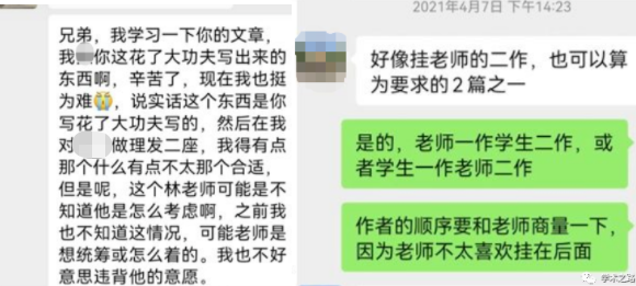 在他的描述中,疑似存在导师挂名学生论文的情况: