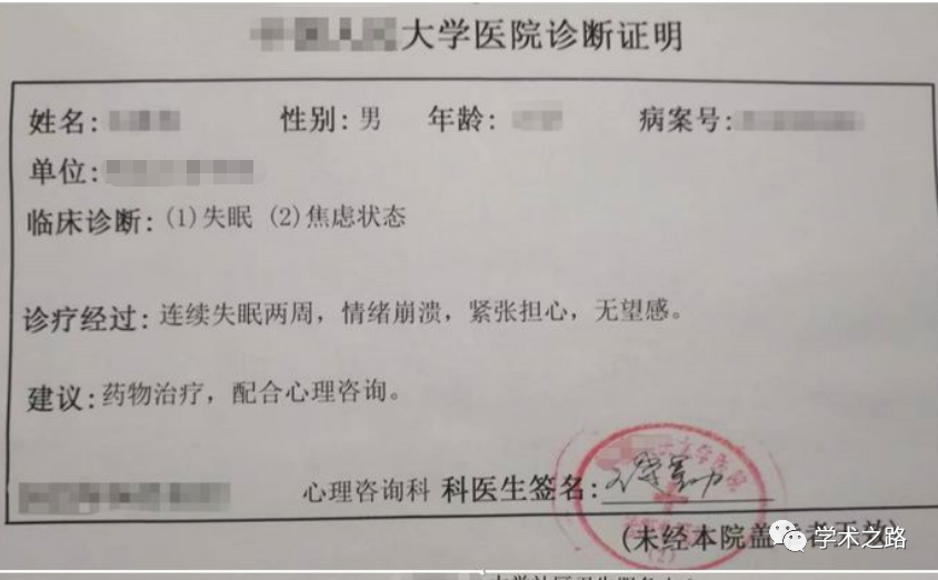 举报信中,这位博士生也提到:因受到导师的影响,自己患有重度抑郁,一直在寻求心理治疗。