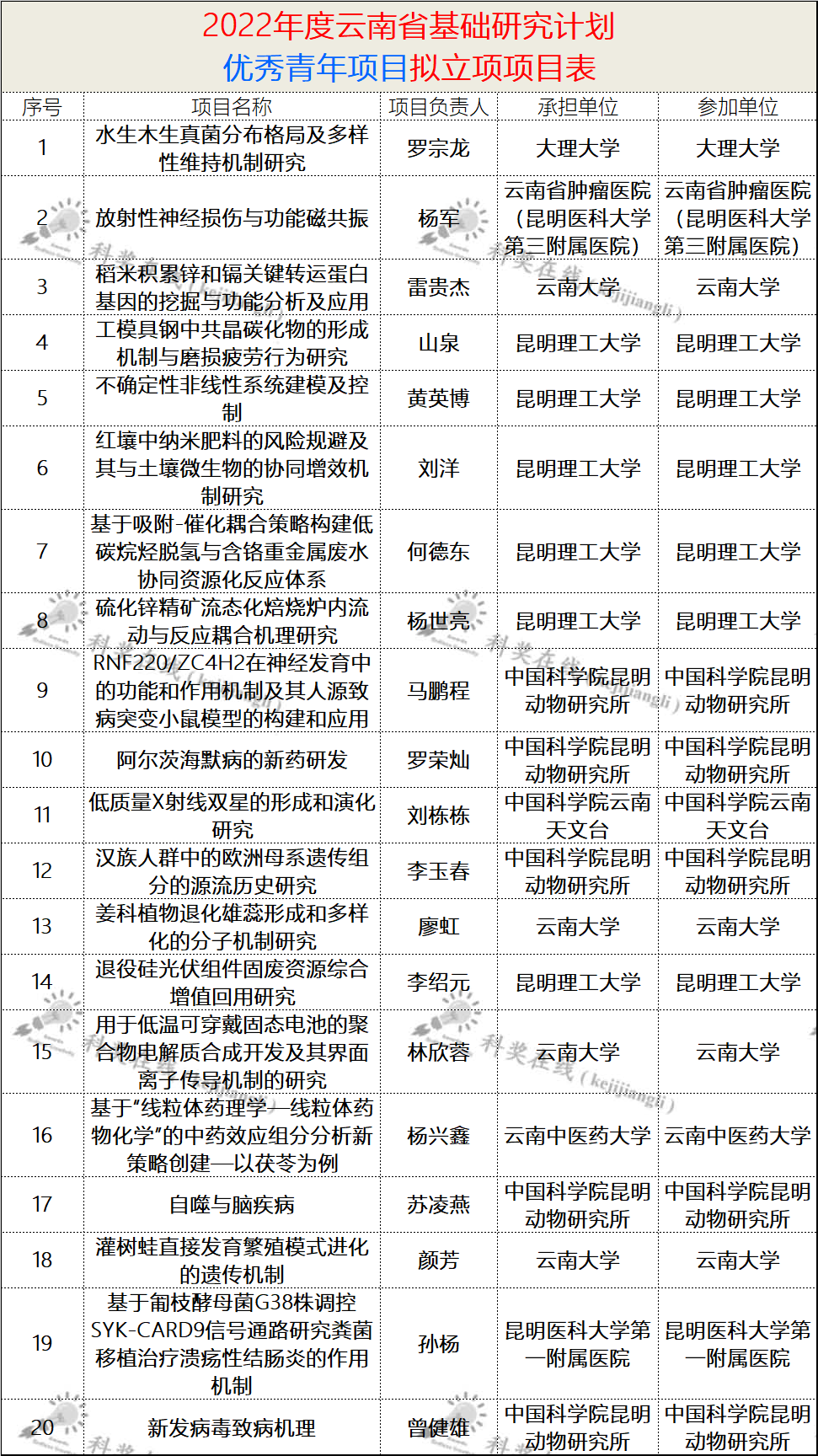 各省最新杰青、优青名单