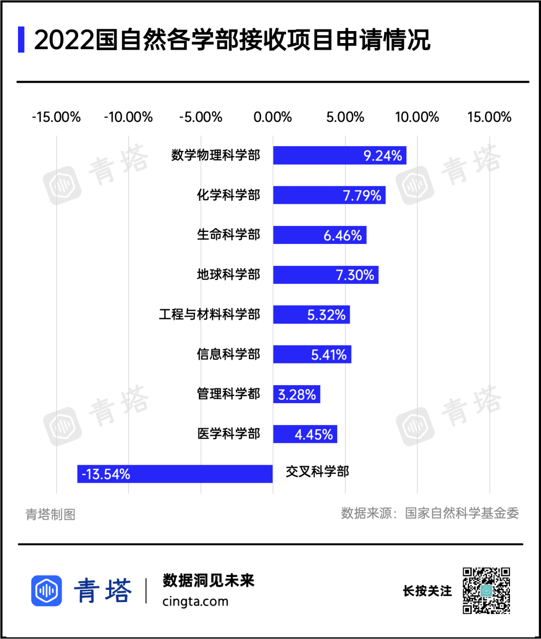 其中,数学物理科学部、化学科学部、地球科学部、生命科学部的项目申请增幅都在6%以上。