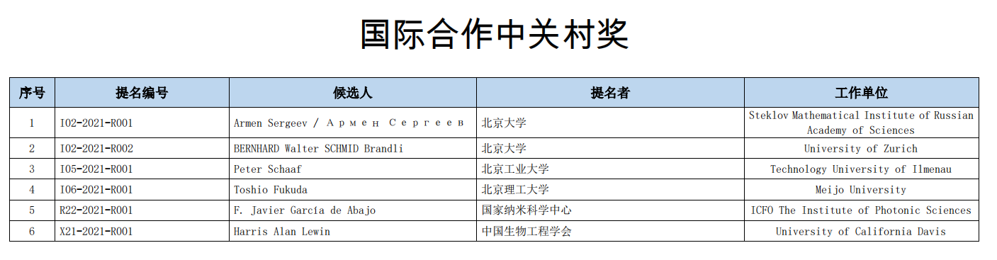 2021年度北京市科学技术奖评审委员会评审结果目录(人物奖)