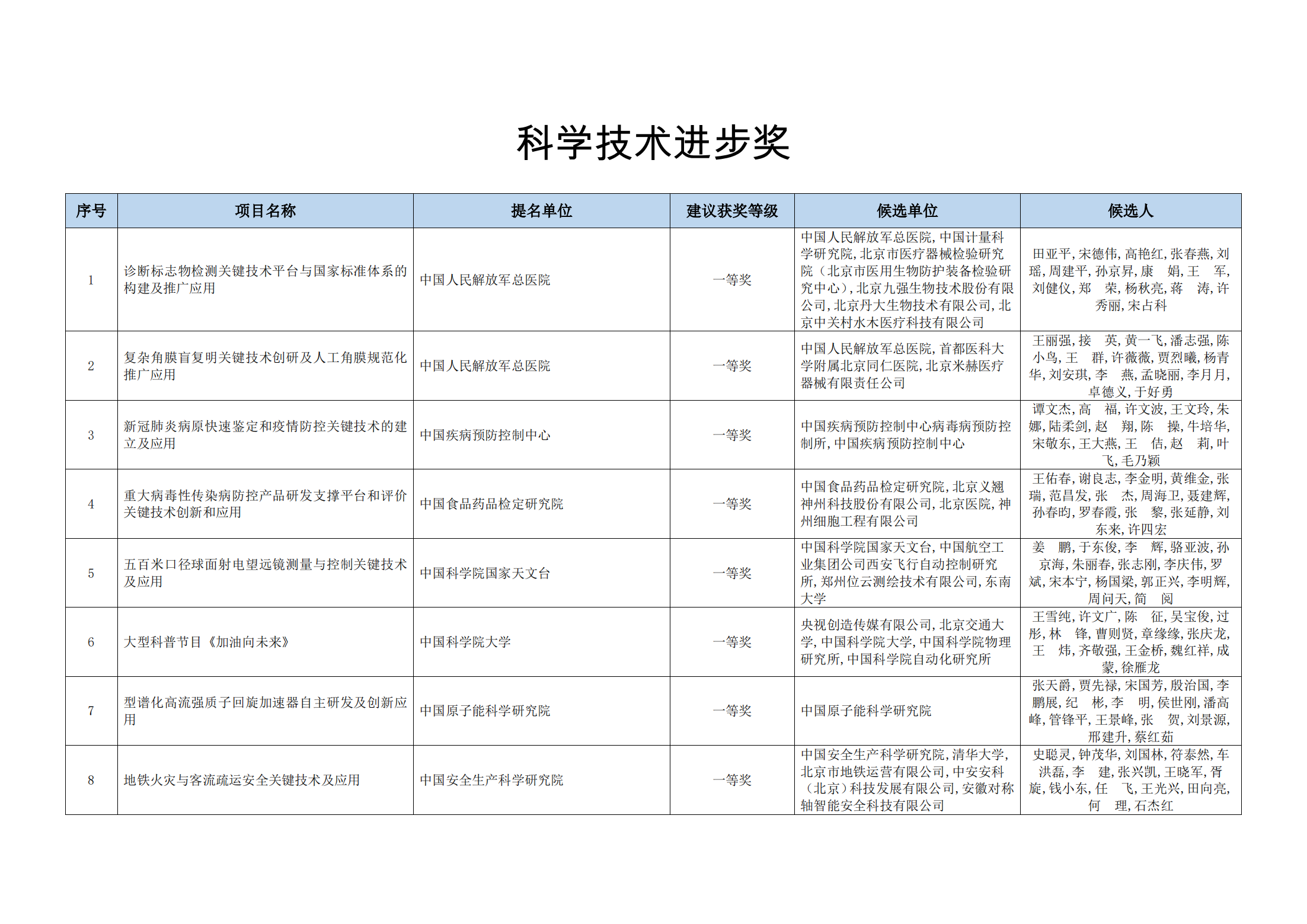 重磅!2021年北京市科技奖初审结果出炉,特等奖7项