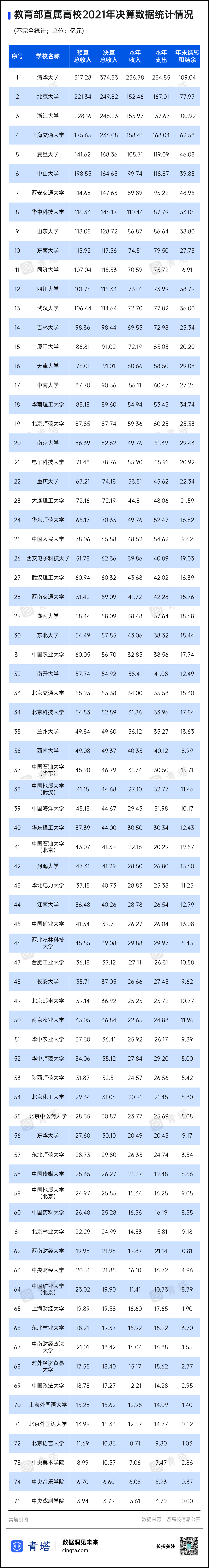 近日,除国际关系学院外,已有75所教育部直属高校陆续公布2021年部门决算数据。