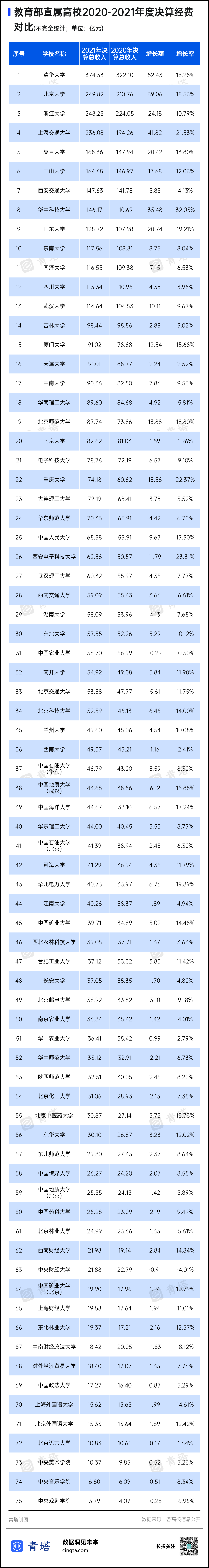 而对比2020年决算数据发现,共有71所教育部直属高校的决算经费实现了增长,占比将近95%。其中,华中科技大学的增长率最高,达到了32.05%。