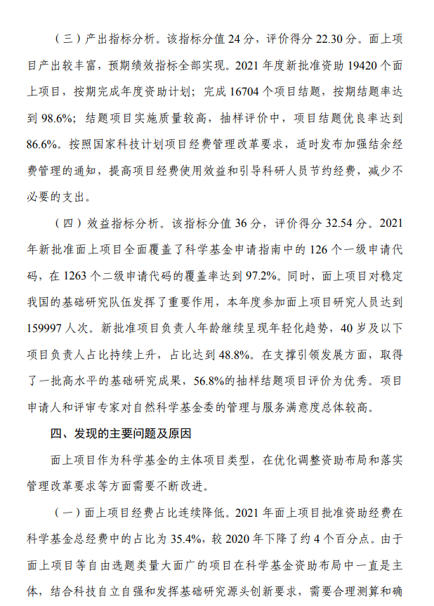 面上项目作为科学基金的主体项目类型,在优化调整资助布局和落实管理改革要求等方面需要不断改进。