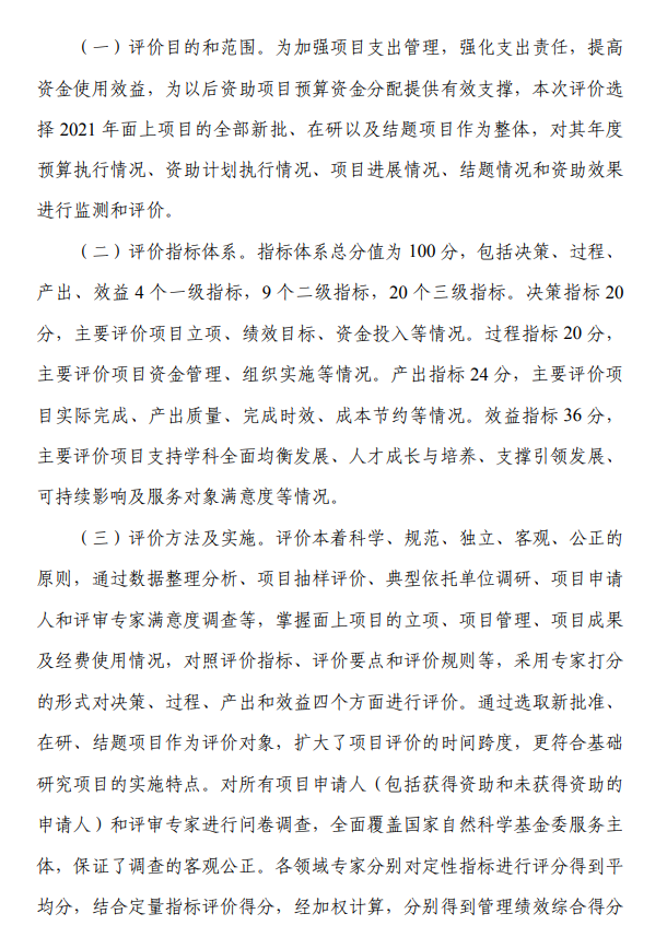 我委今年在中央部门决算中反映“国家自然科学基金项目”绩效自评结果。