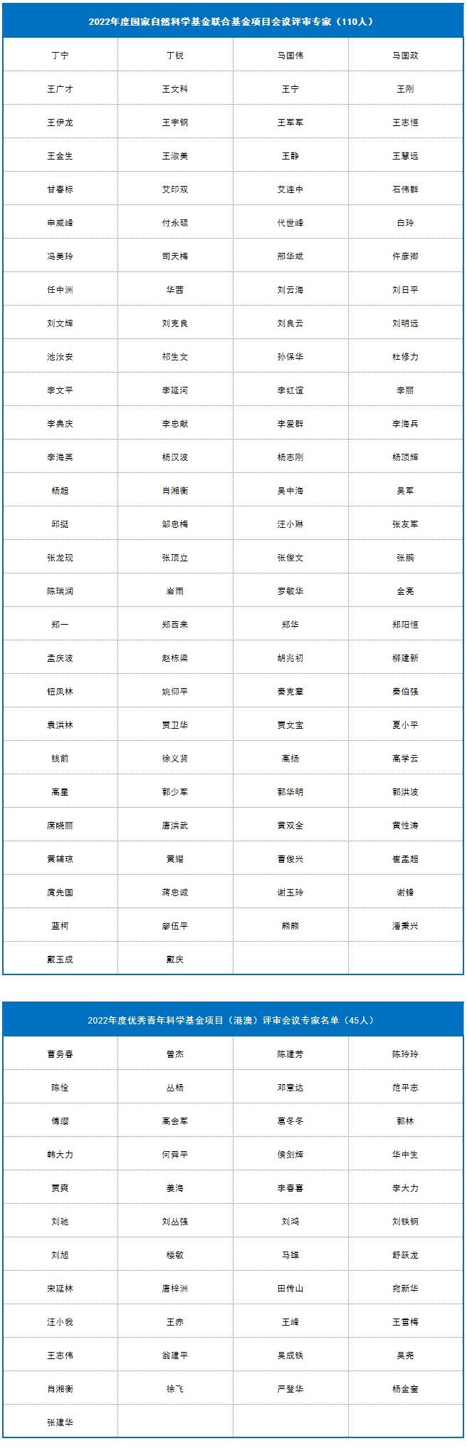 8月26日,自然科学基金委计划与政策局公布了2022年度国家自然科学基金联合基金项目会议评审专家110人。
