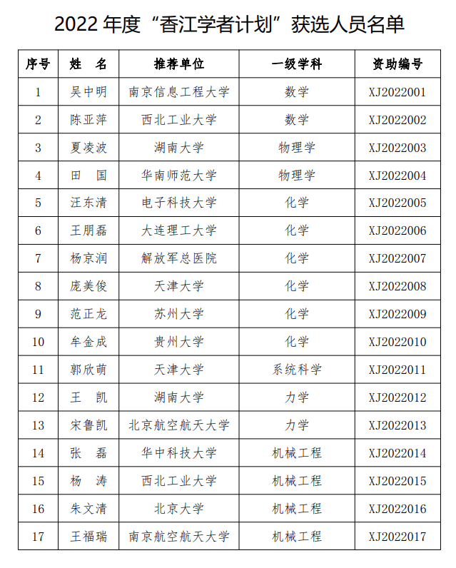 8月31日,中国博士后科学基金网站发布2022年度 “香江学者计划”及“澳门青年学者计划”获选结果的通知。