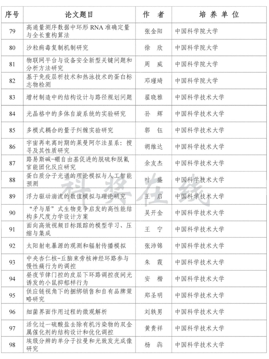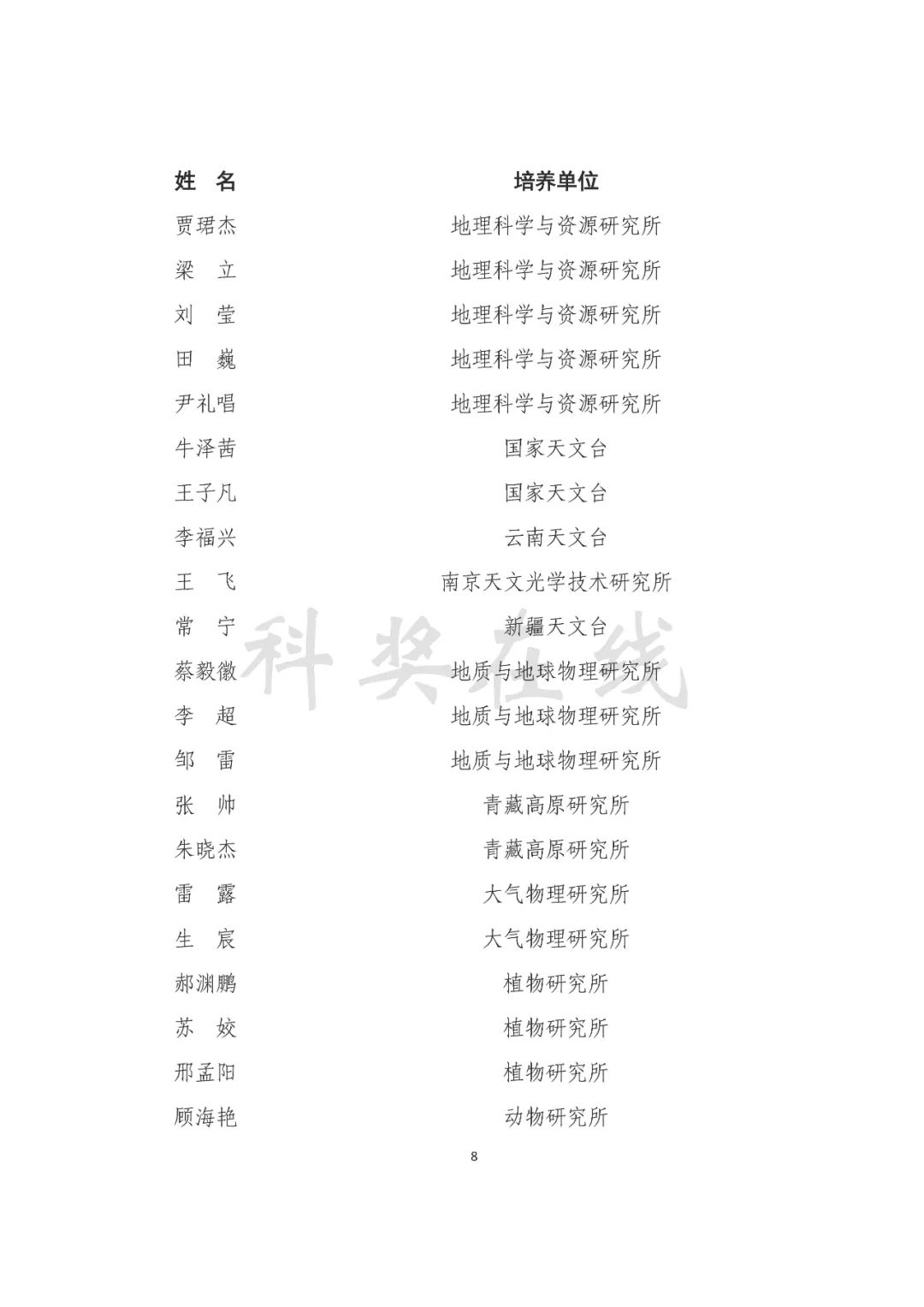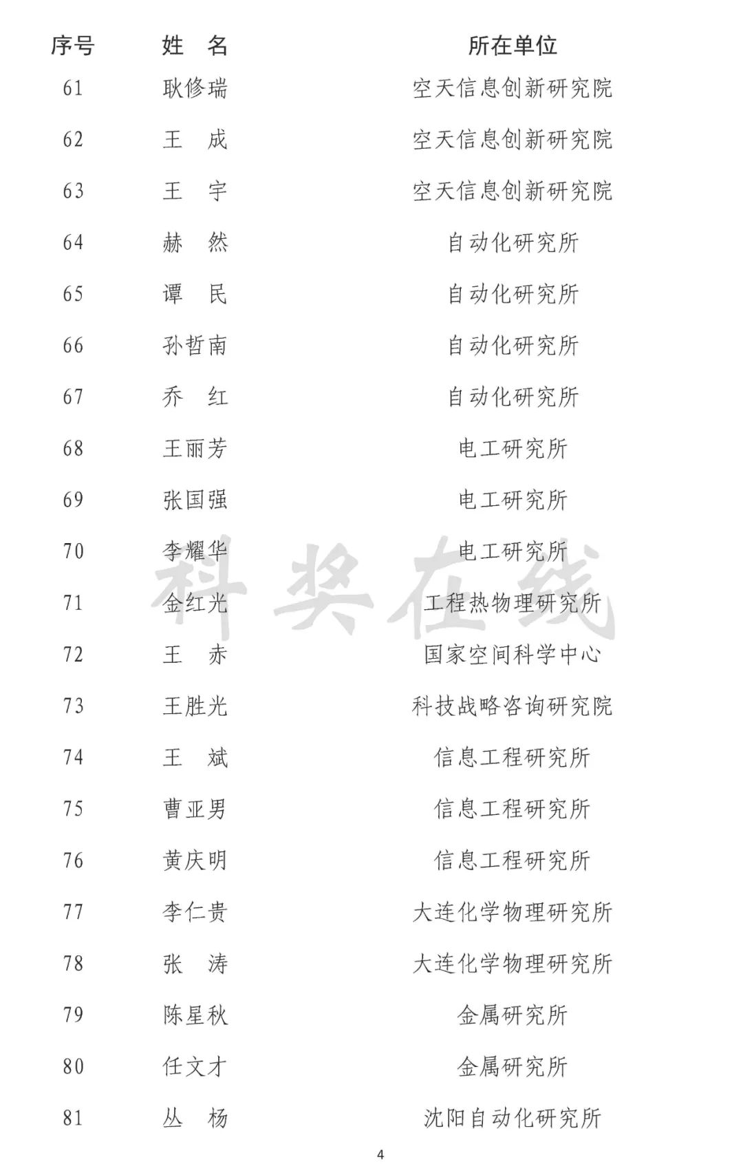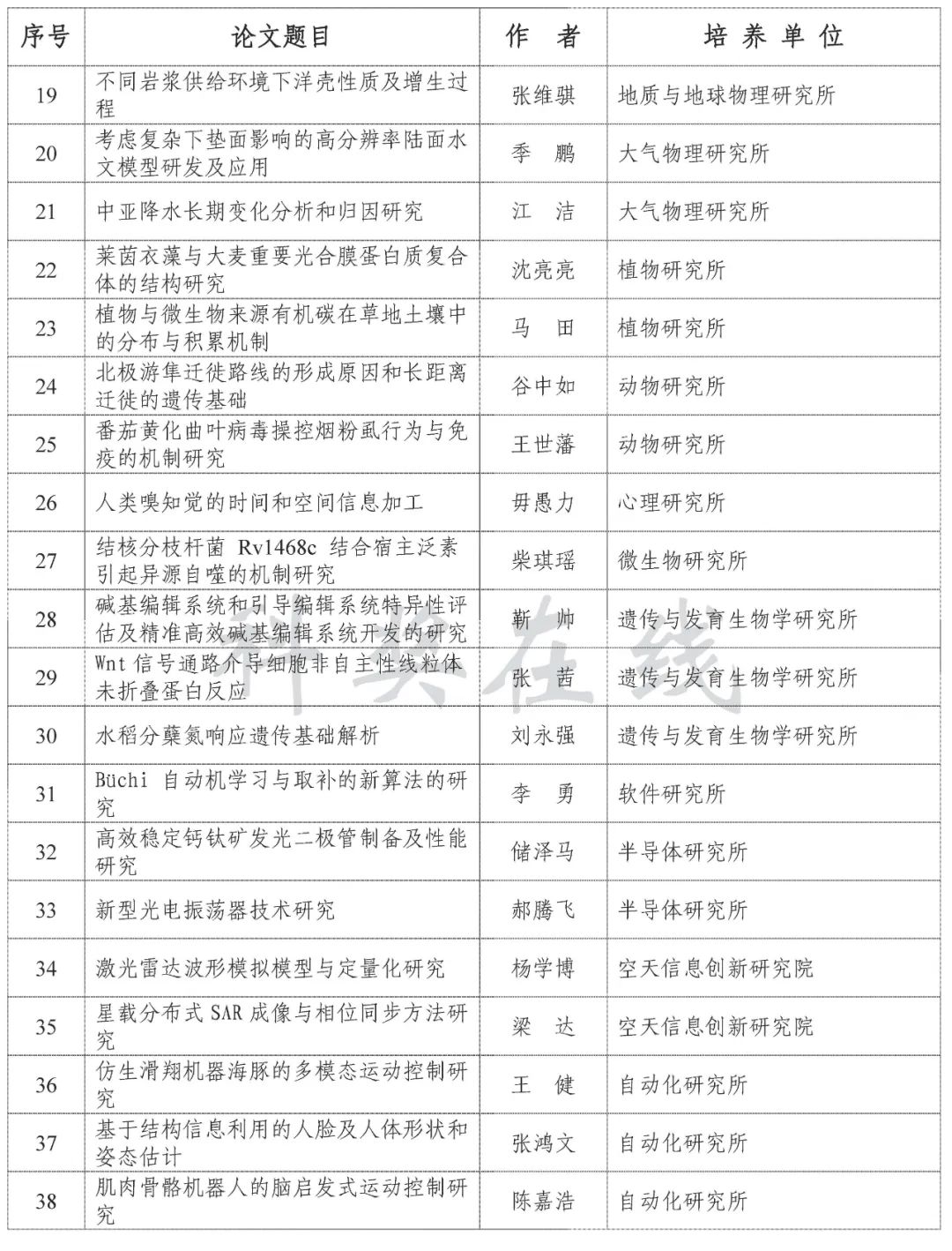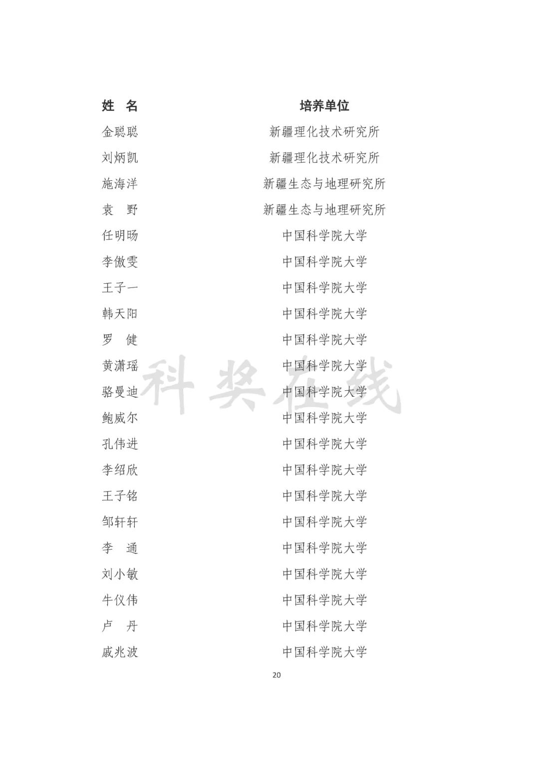 近日,中国科学院公布2022年度“中国科学院院长奖”、中国科学院优秀博士学位论文、“中国科学院优秀导师”、各项冠名奖学金评审结果,经评审,480人荣获2022年度“中国科学院院长奖”,其中王颖等80人获“中国科学院院长特别奖”,刘为等400人获“中国科学院院长优秀奖”。100篇博士论文被评为2022年度中国科学院优秀博士学位论文。173名指导教师获2022年度“中国科学院优秀导师”称号。90人获得地奥奖学金,20人获得大恒光学奖学金。获奖名单如下: