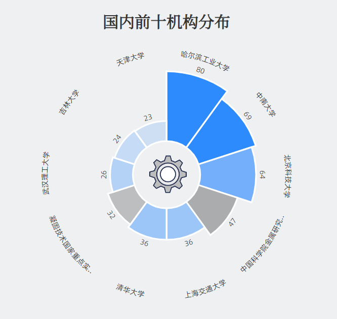 国内材料腐蚀与失效顶尖学者分布前十机构多为高校,其中哈尔滨工业大学学者以为80人的顶尖学者数,位居第一。中南大学和北京科技大学顶尖人数略低于排名第一的哈尔滨工业大学,拥有69,64位顶尖学者,排名二三位。中国科学院金属研究所、上海交通大学等其他机构学者人数皆低于60人,位居后位。国内顶尖学者分布集中于于国内材料腐蚀与失效专业排名相对于靠前的院校。国内高校在学者来源中占主要部分。