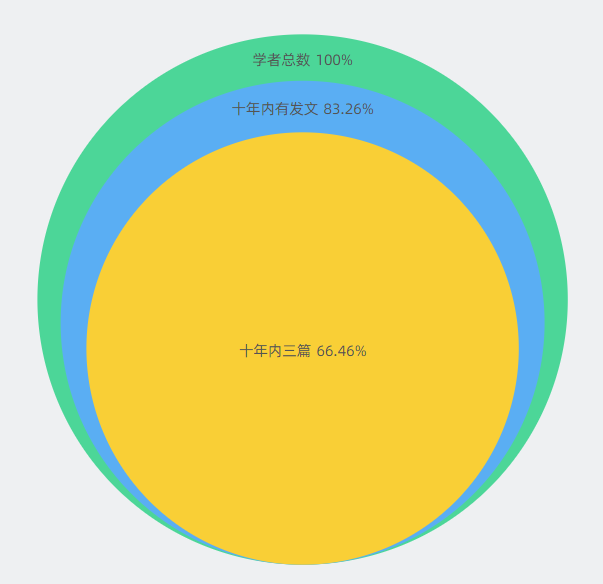 全球材料腐蚀与失效学者活跃度方面,学者总数为47万人左右,其中十年内有发文的有39.2万人,占比83.26%,十年内发文学者的发文量达到三篇的学者数为31.3万人,占比66.46%。材料腐蚀与失效学者活跃度较高,发展空间广阔。