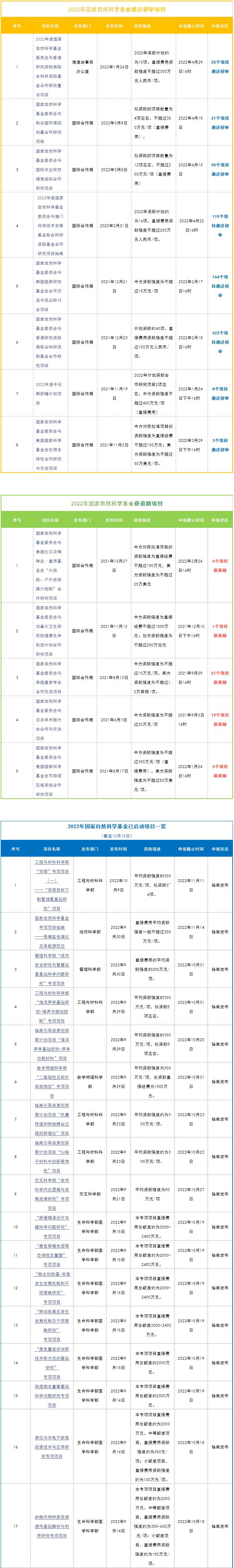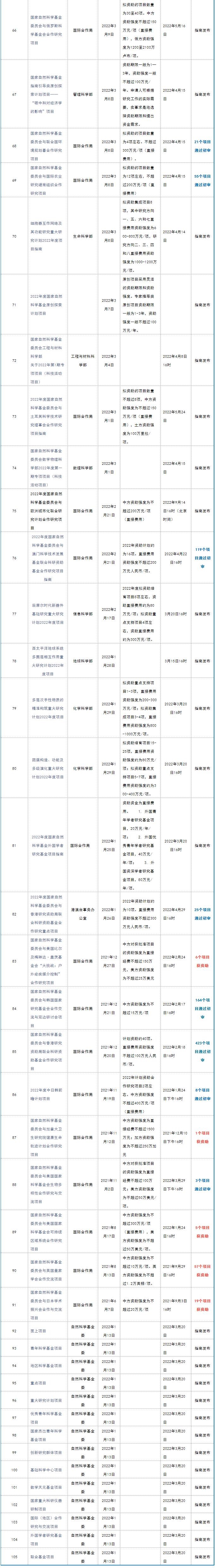 2022年国家自然科学基金项目申报指南还在陆续发布中。据不完全统计,截至目前2022年国家自然科学基金已发布105个项目的申报指南,除集中接收申请项目外,已有8个项目通过初审,5个项目已发布获资助批准通知。