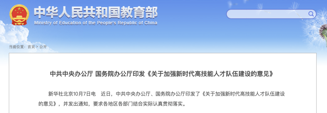 近日,中共中央办公厅 国务院办公厅印发《关于加强新时代高技能人才队伍建设的意见》。