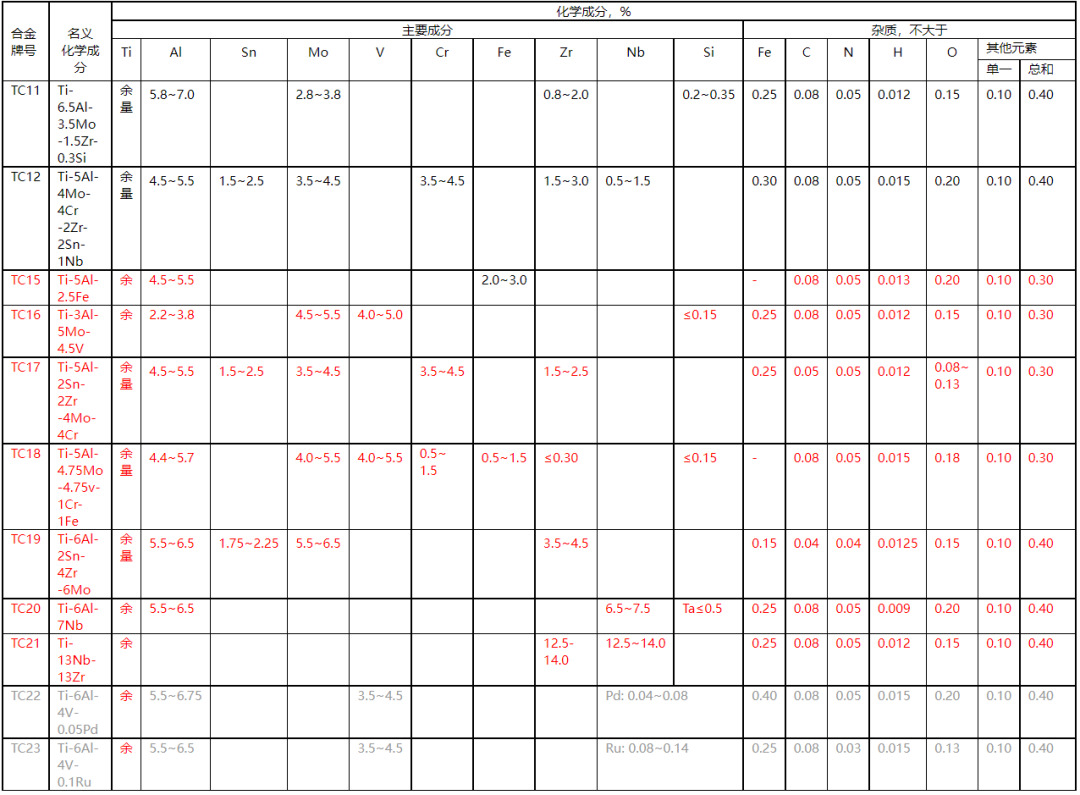 最后附上国外标准及国家标准新老钛牌号和化学成分对比
