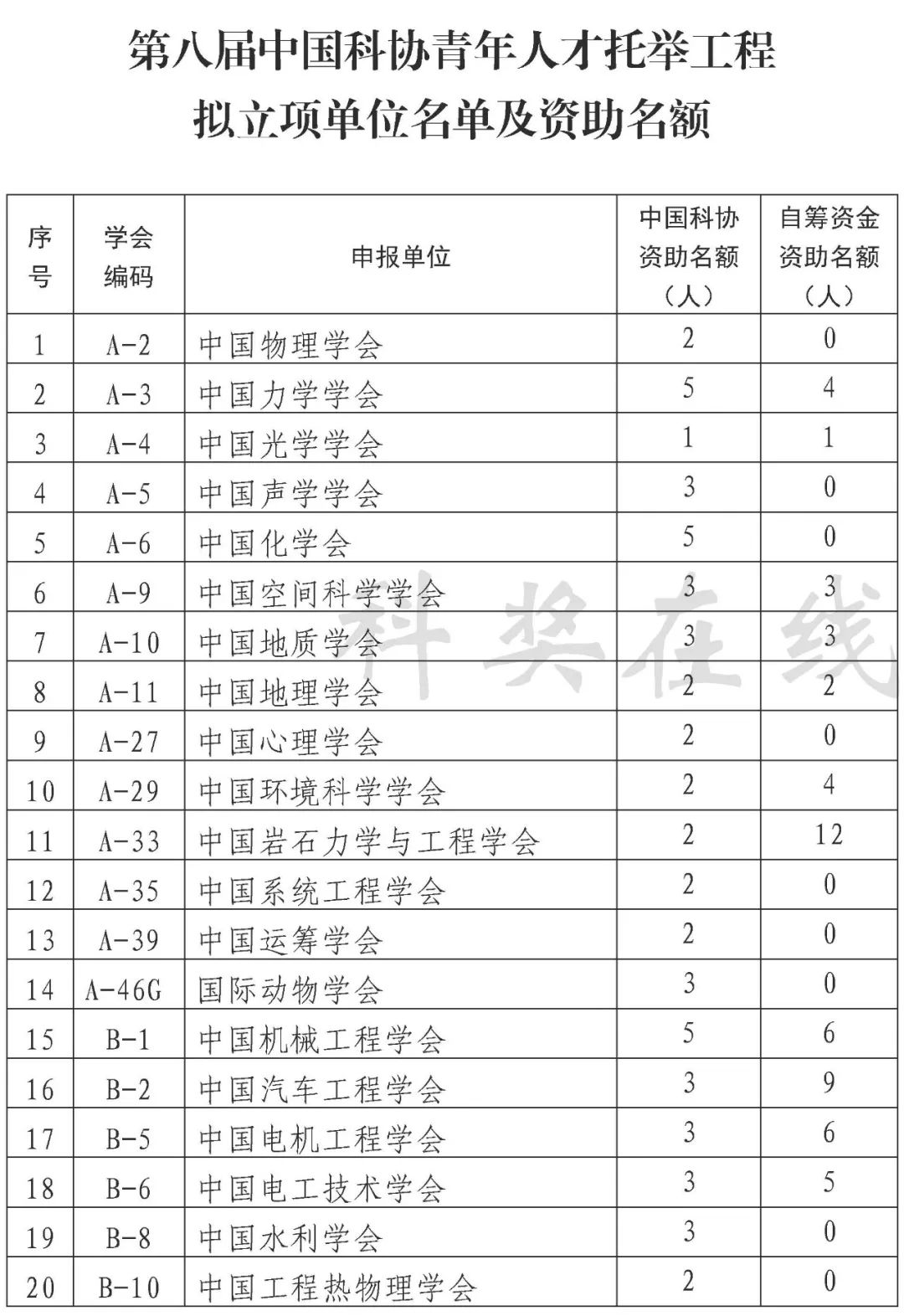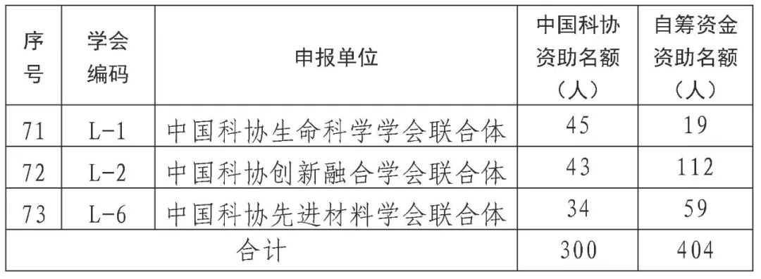 (1)中国科协资助名额