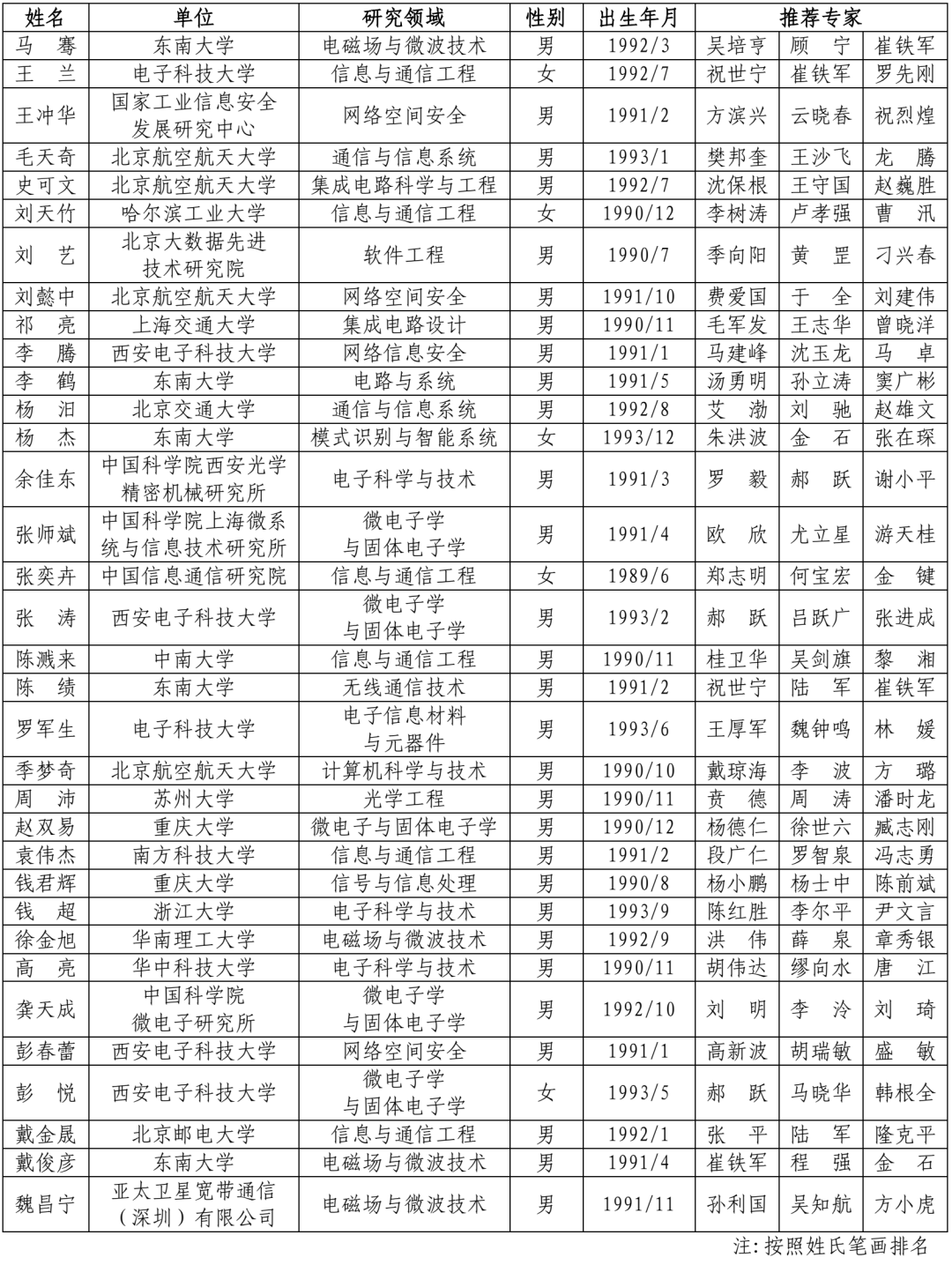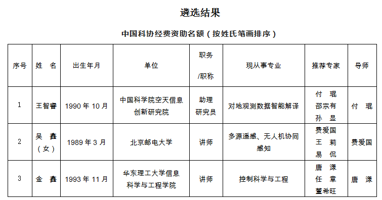 1、第八届中国科协青年人才托举工程人选名单(34人)