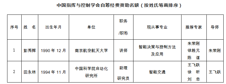 (2)中国人工智能学会自筹资金资助名额