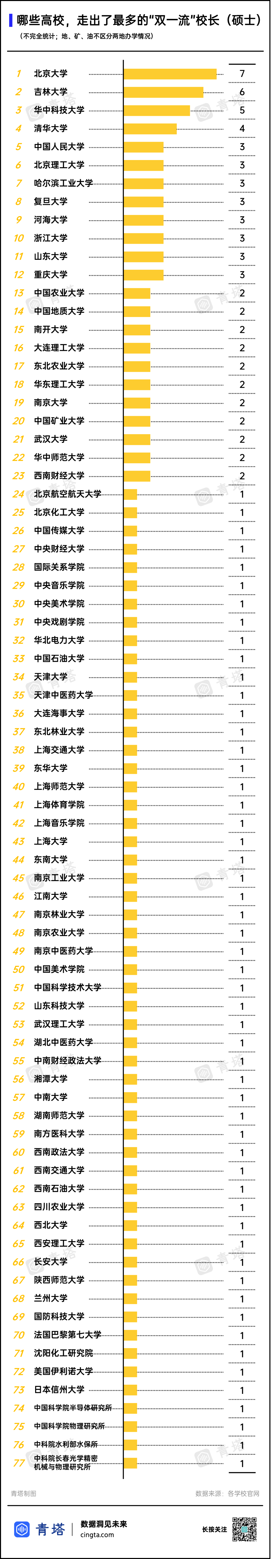 此外,有18所双一流高校的校长为“70后”,并有5所“双一流”高校出现了75后“一把手”: