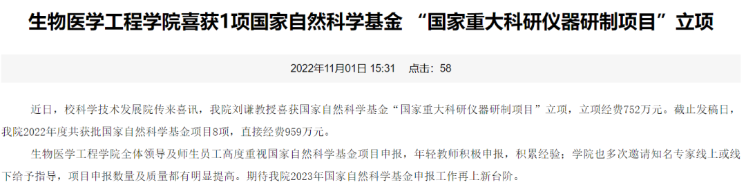 据悉,2022年国家自然科学基金重大科研仪器研制项目评审结果公布。