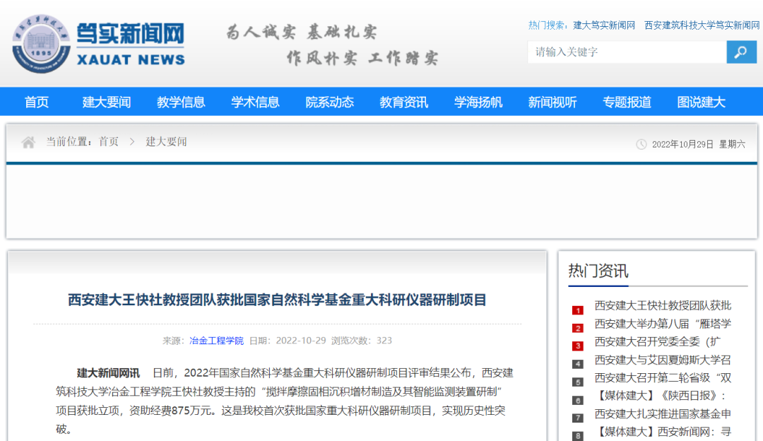 这是西安建筑科技大学首次获批国家重大科研仪器研制项目,实现历史性突破。