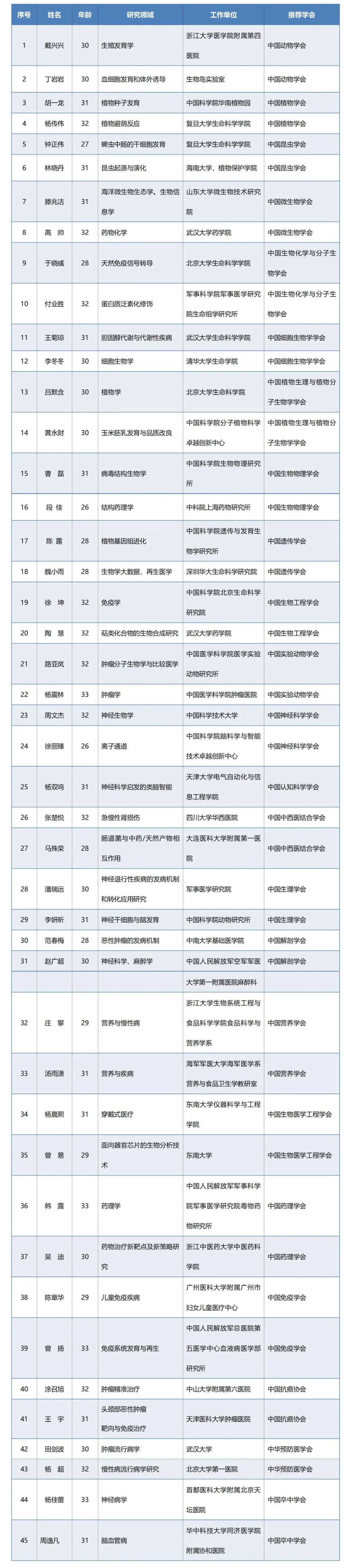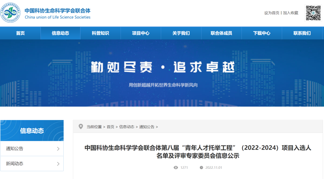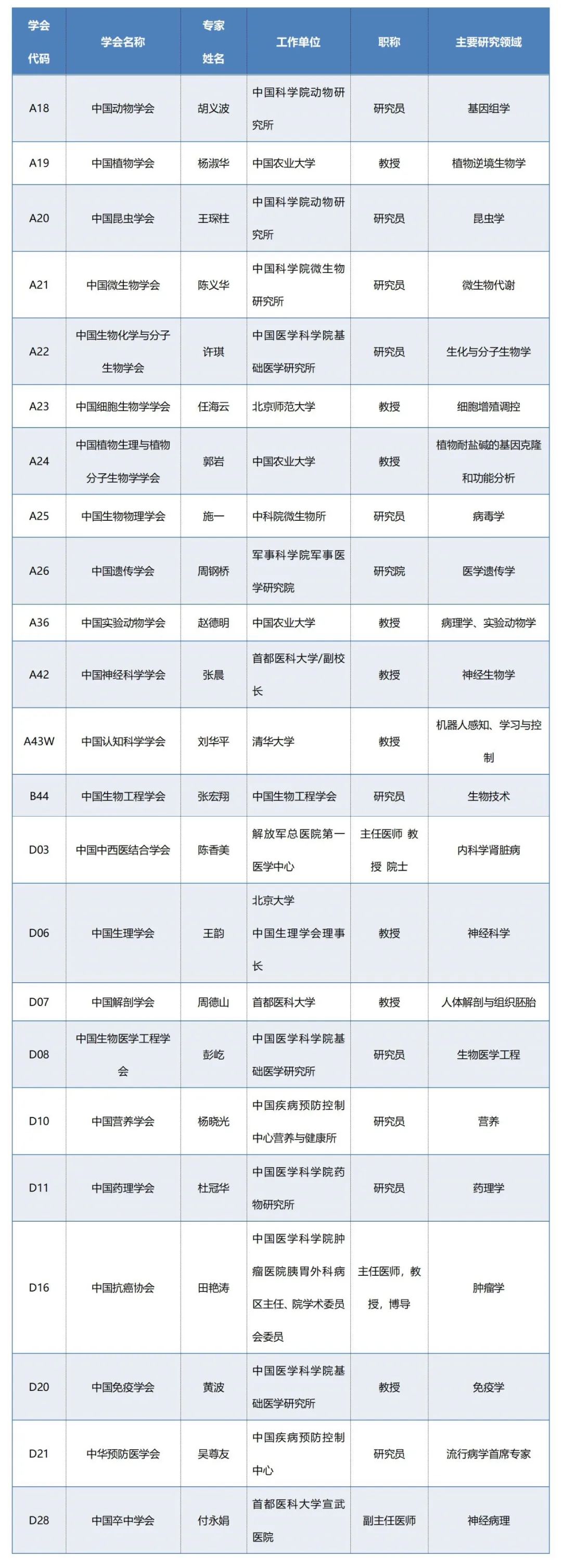 中国科协生命科学学会联合体第八届“青年人才托举工程”(2022-2024)项目入选人名单及评审专家委员会信息公示