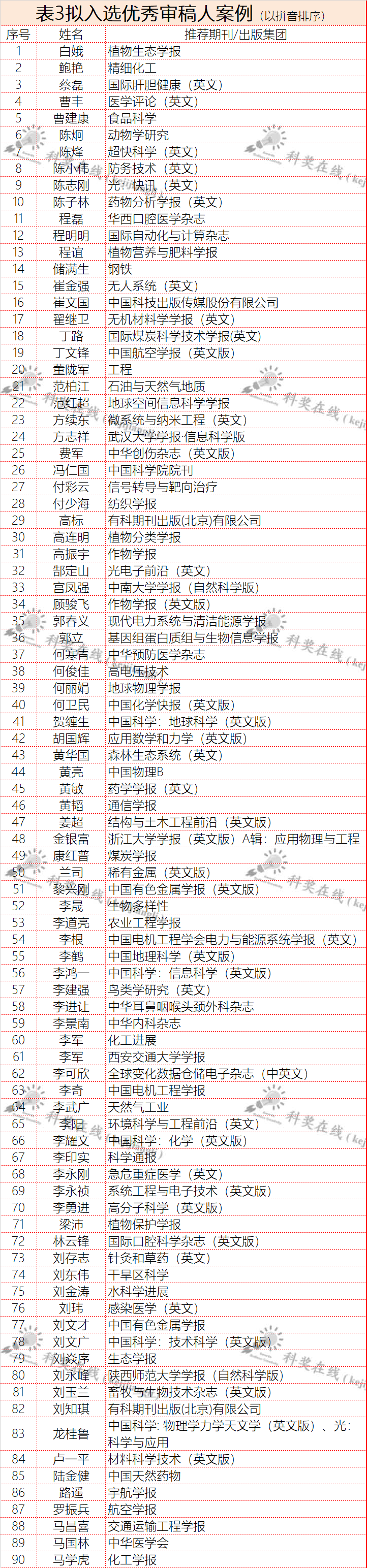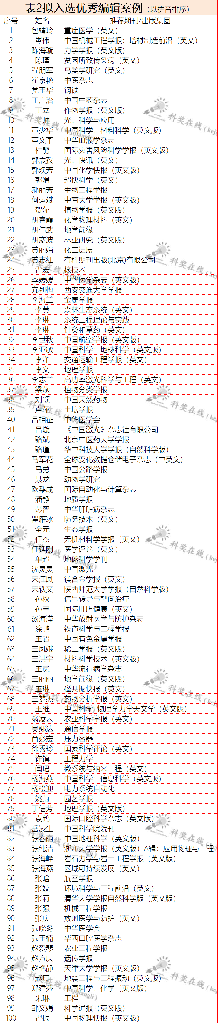 2022年度中国科技期刊卓越行动计划选育高水平办刊人才子项目-优秀主编、编辑、审稿人案例遴选汇编项目拟入选案例