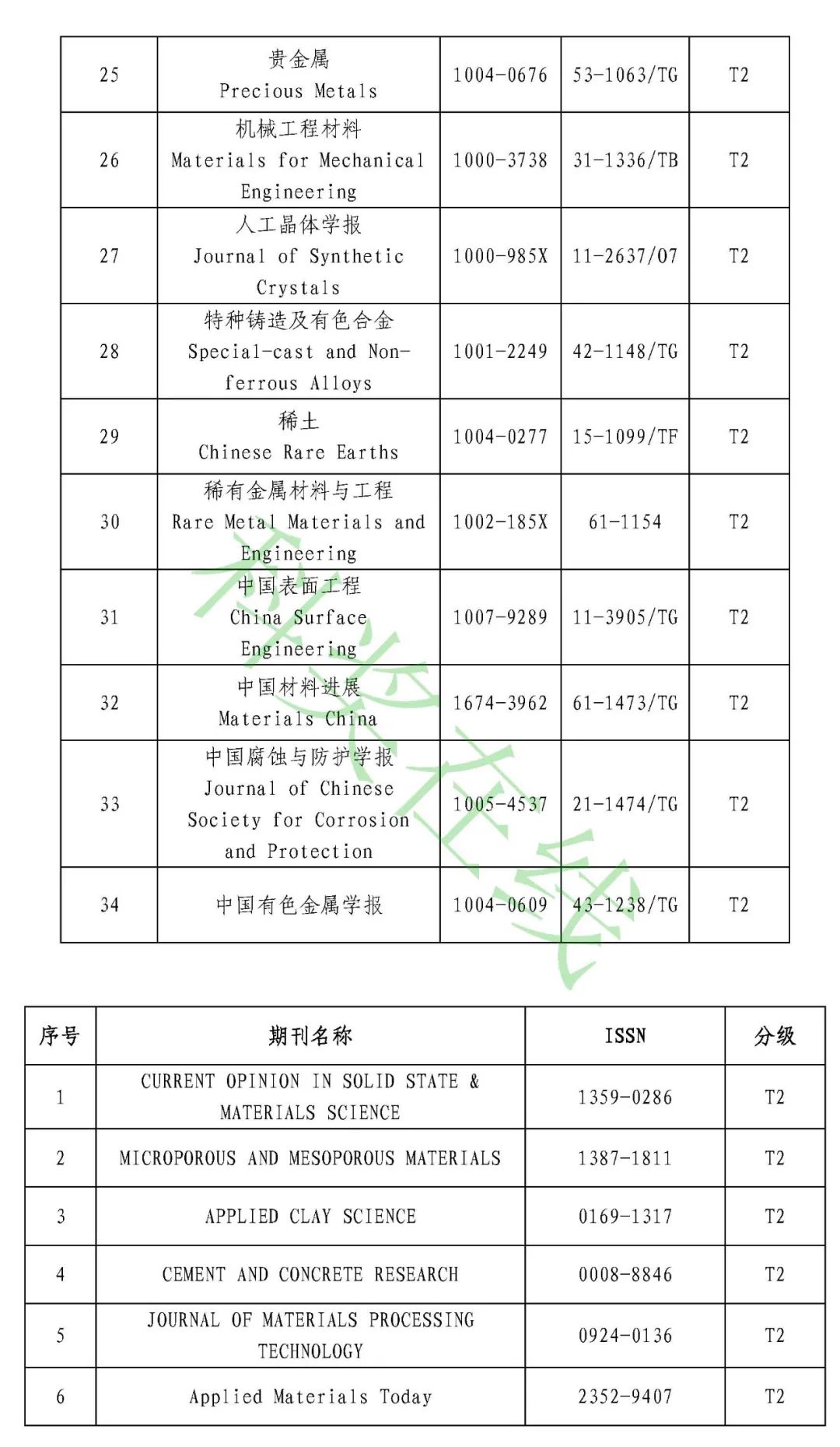2.有色金属领域高质量科技期刊分级目录(共212种)