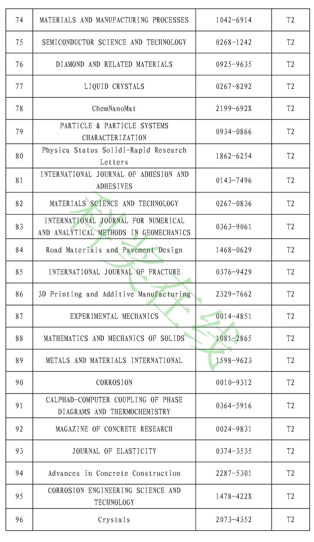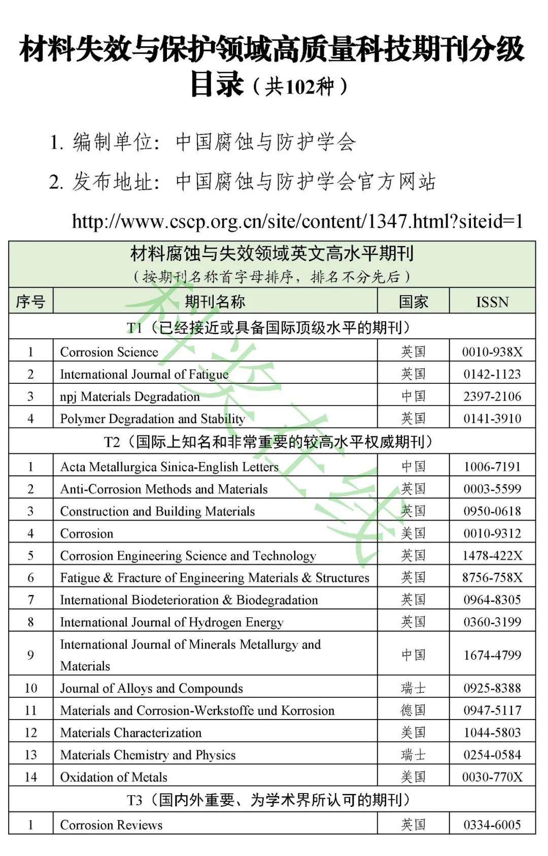 4.材料失效与保护领域高质量科技期刊分级目录(共102种)
