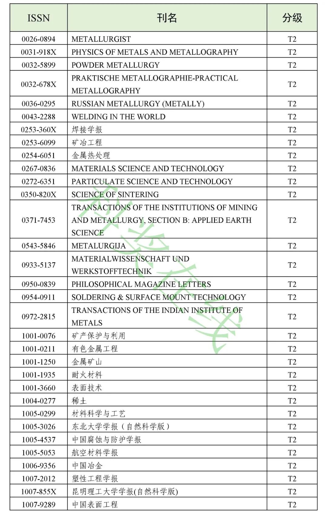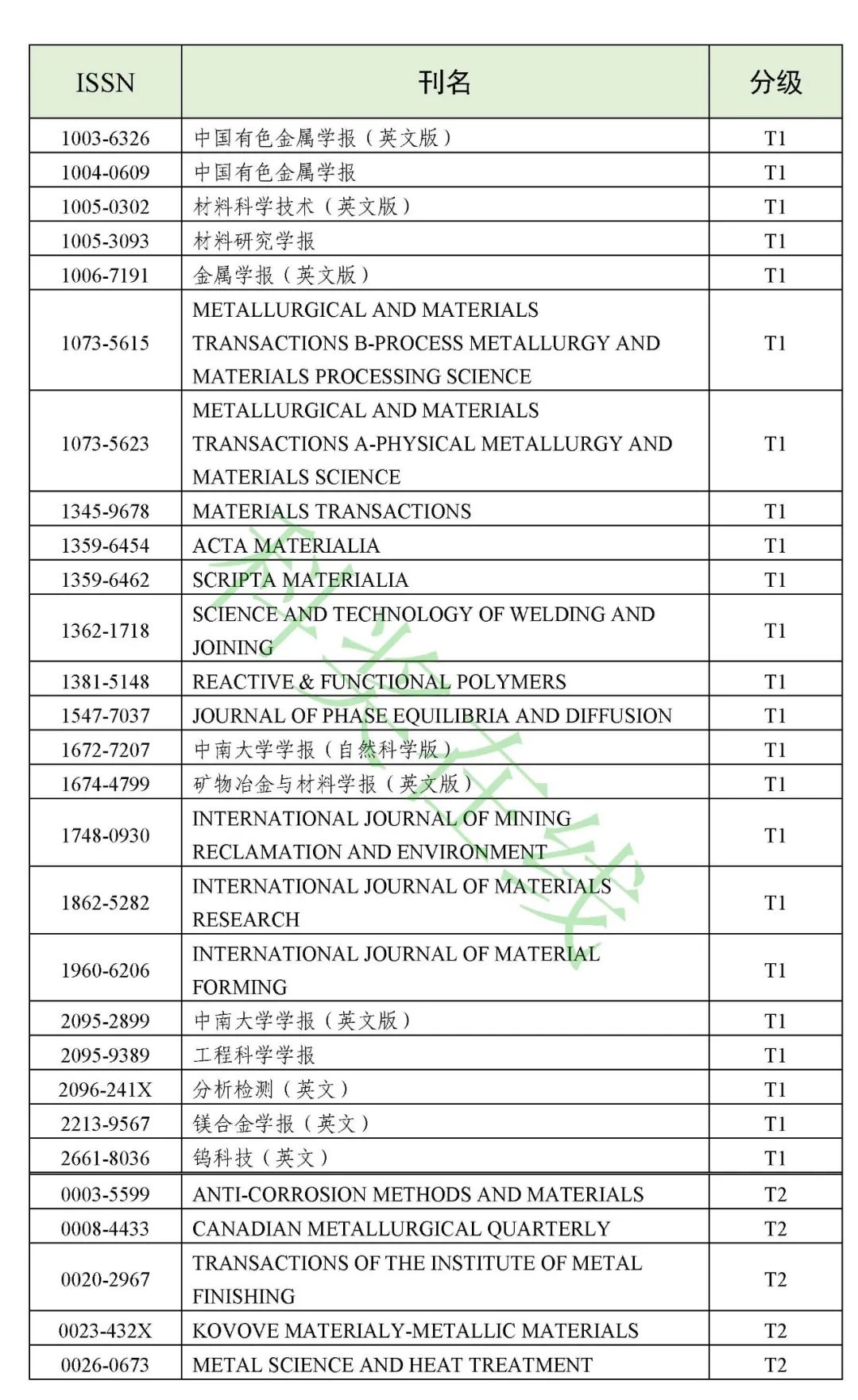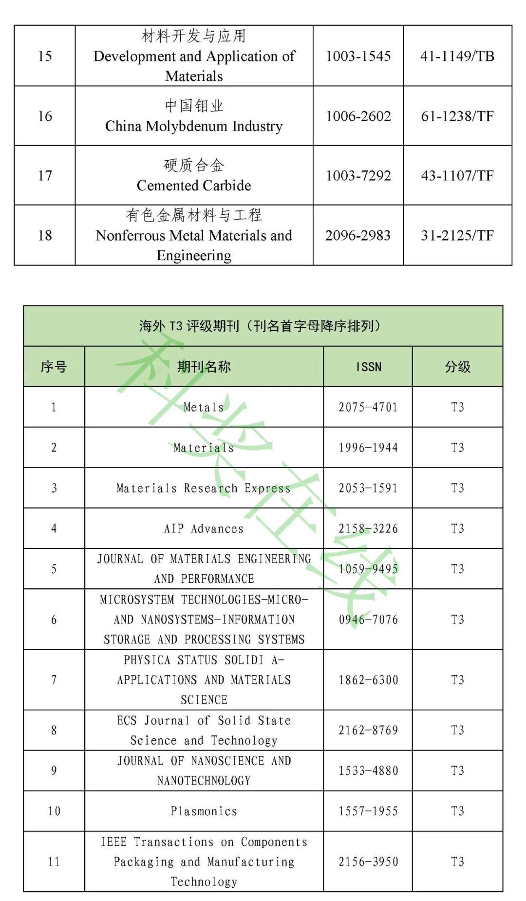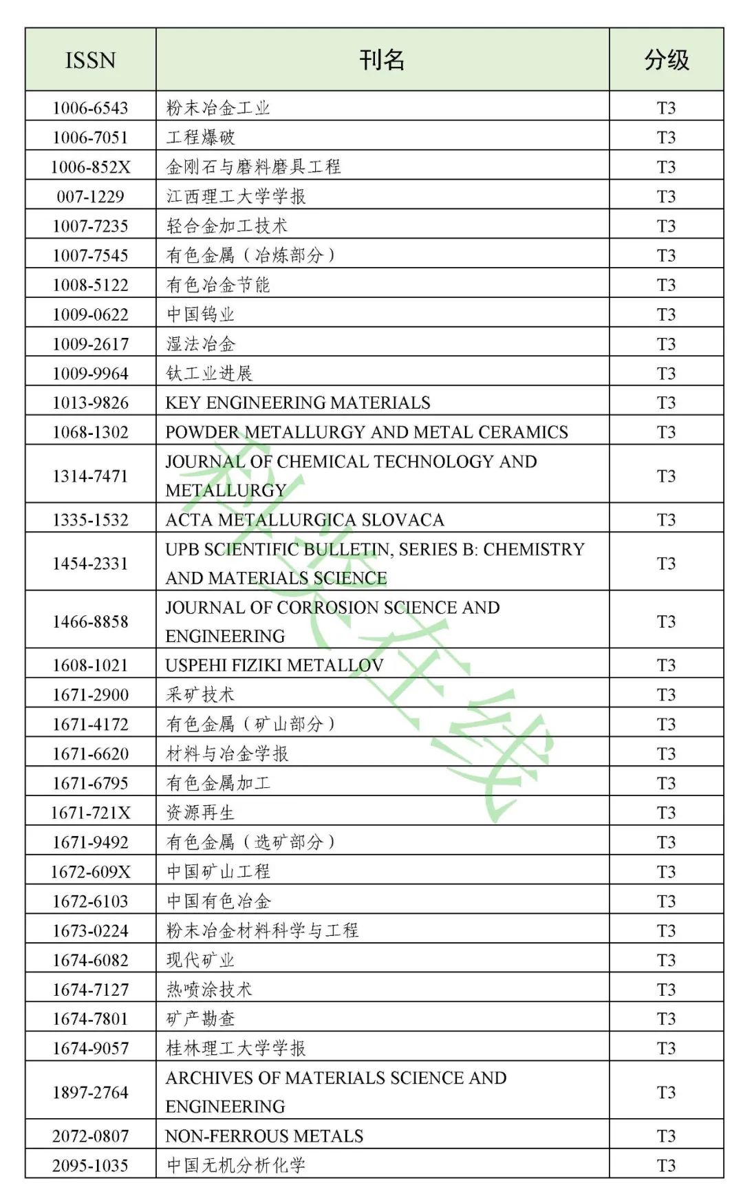 3.冶金工程技术与金属材料(金属学与金属工艺)领域高质量科技期刊分级目录(共136种)