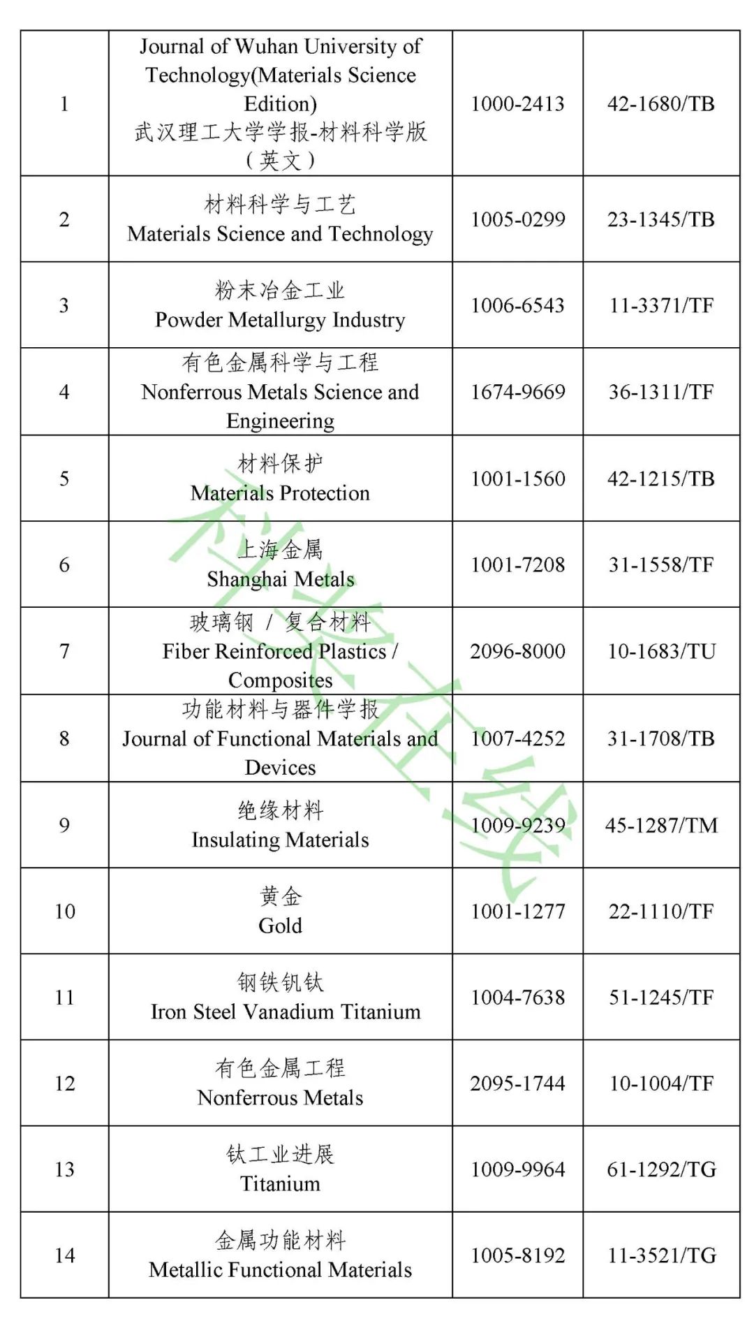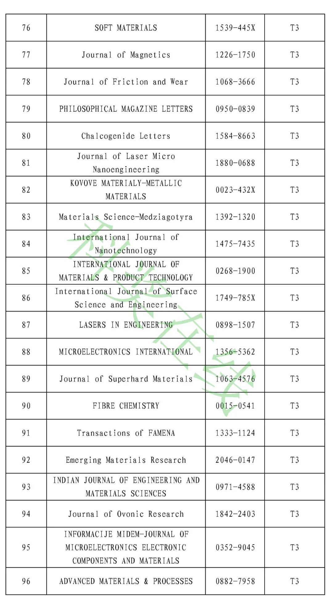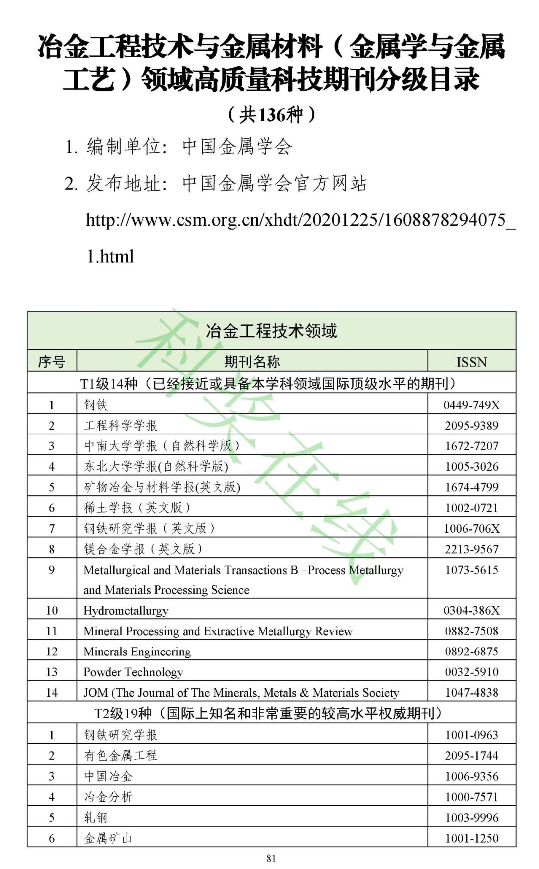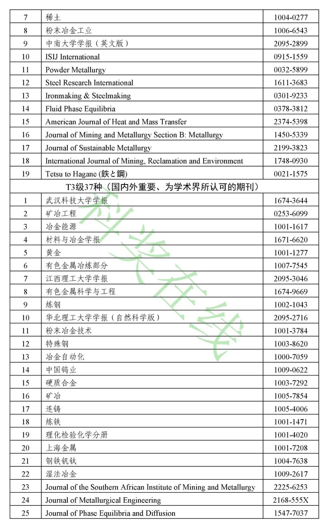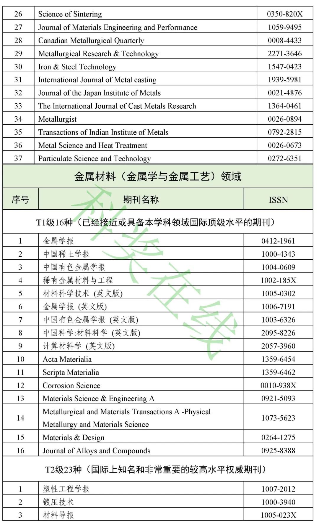 3.冶金工程技术与金属材料(金属学与金属工艺)领域高质量科技期刊分级目录(共136种)