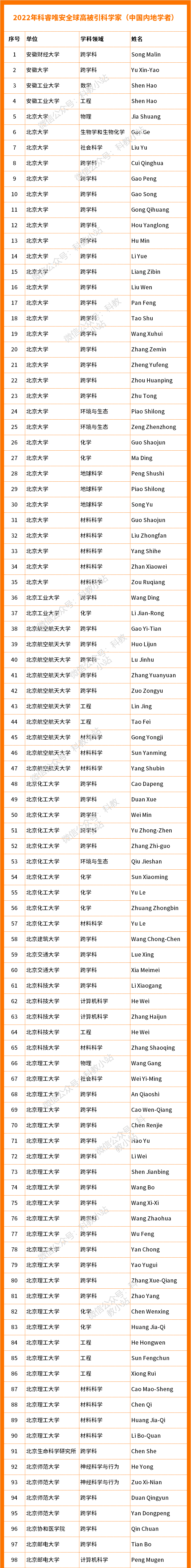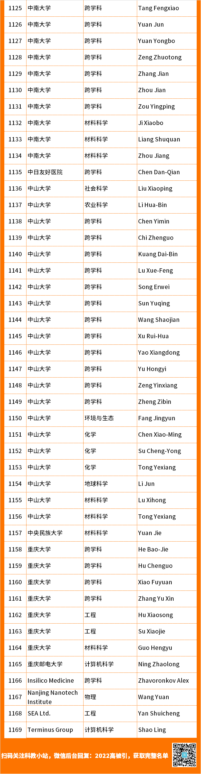 刚刚,科睿唯安公布2022年全球高被引科学家名单。