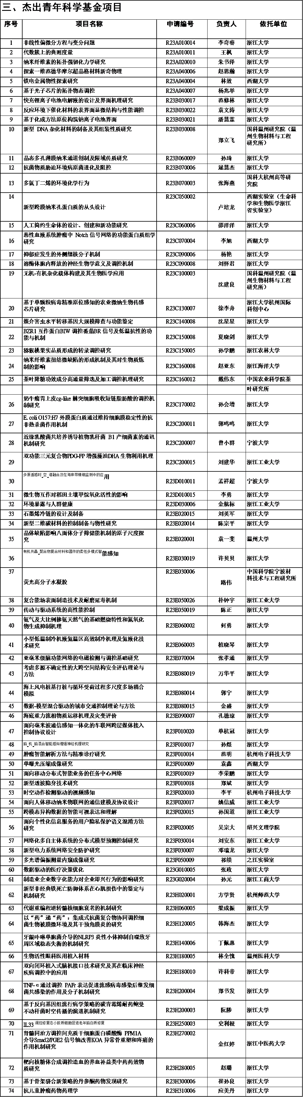 杰出青年科学基金项目74项;
