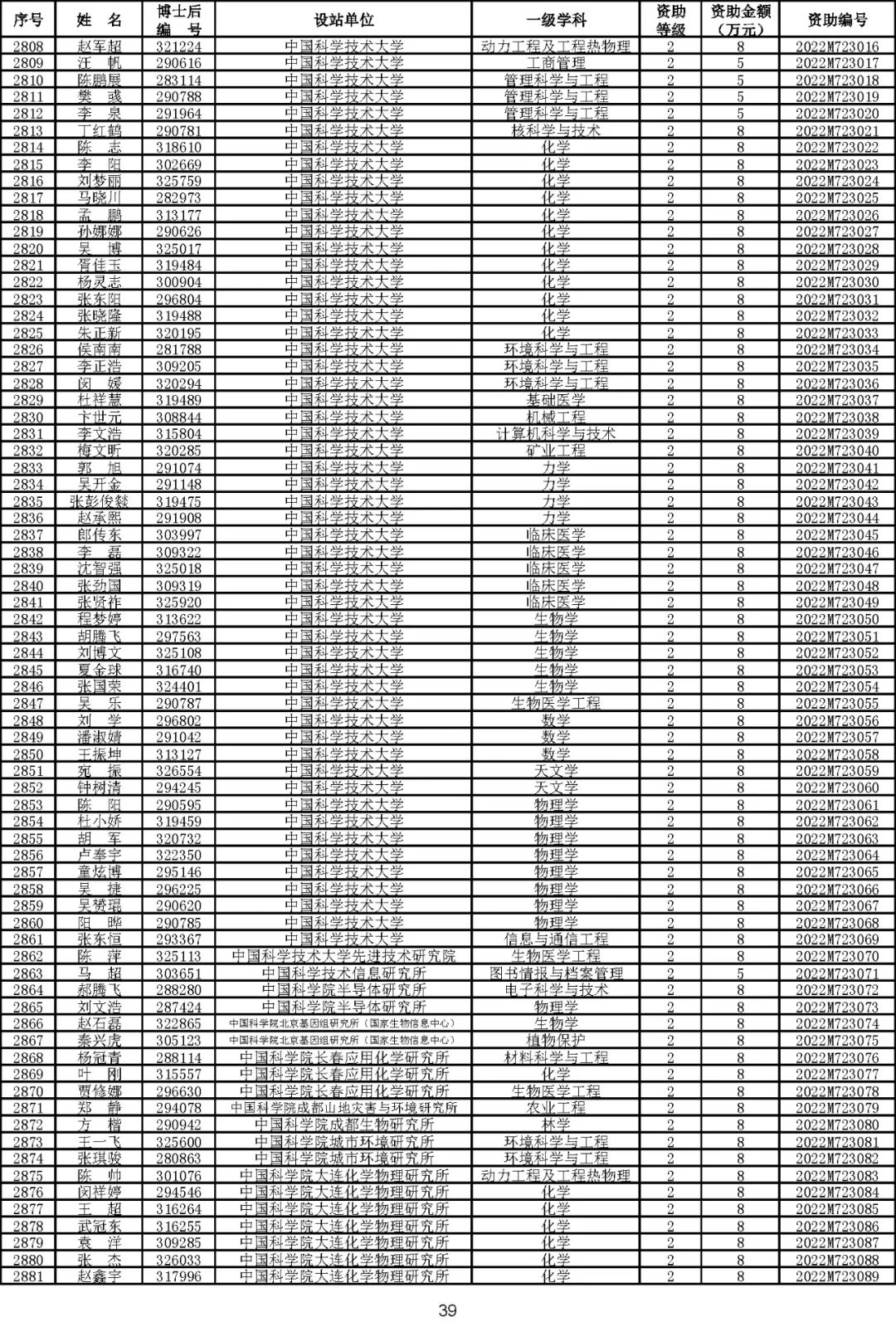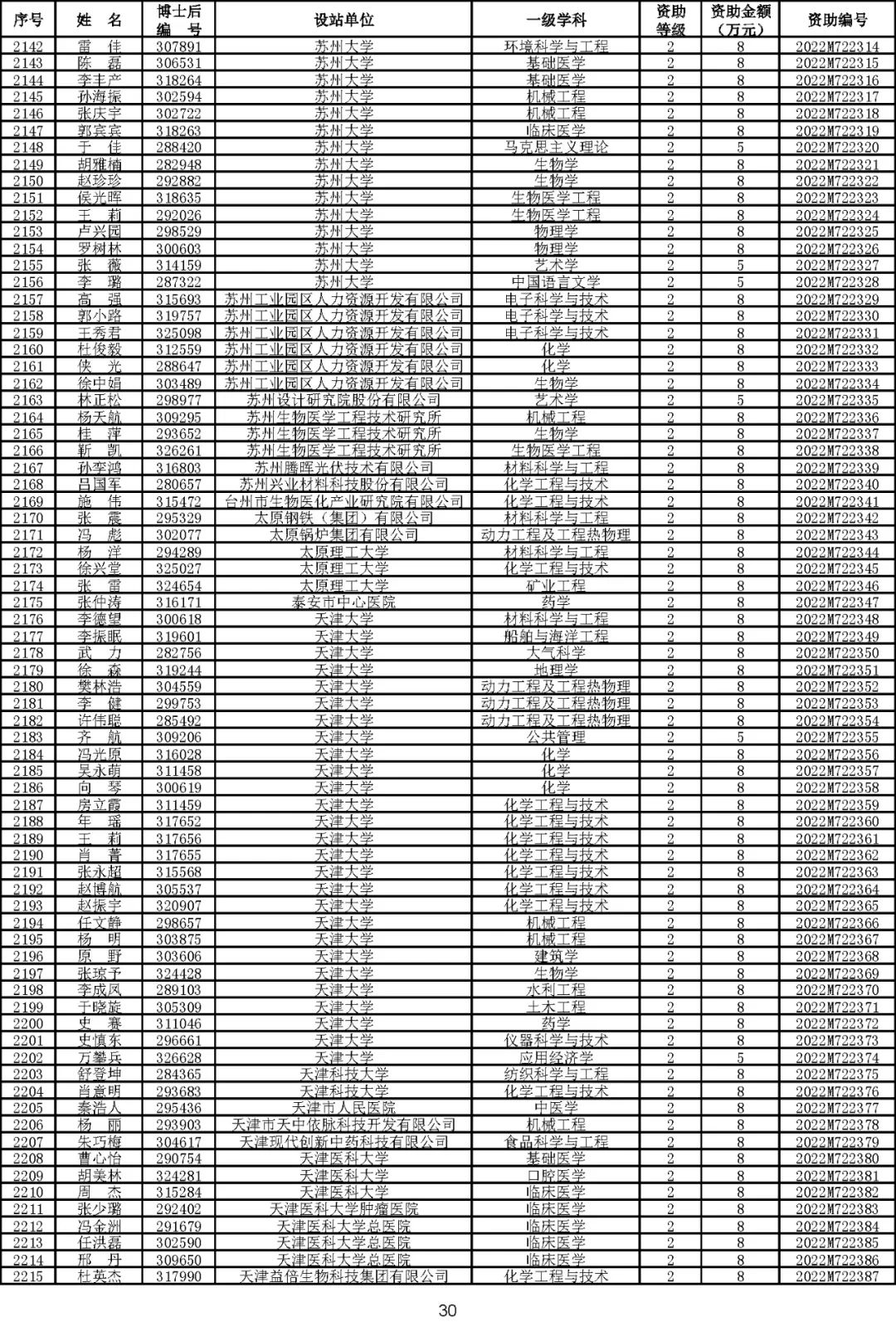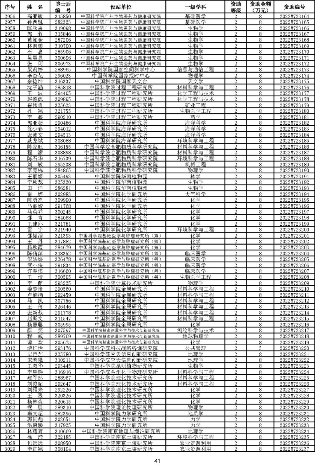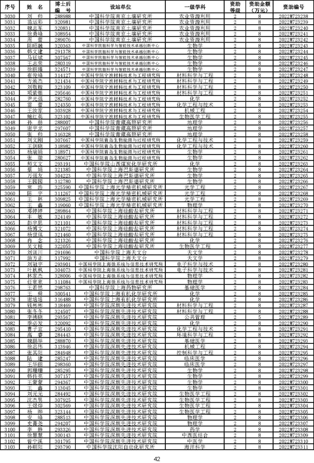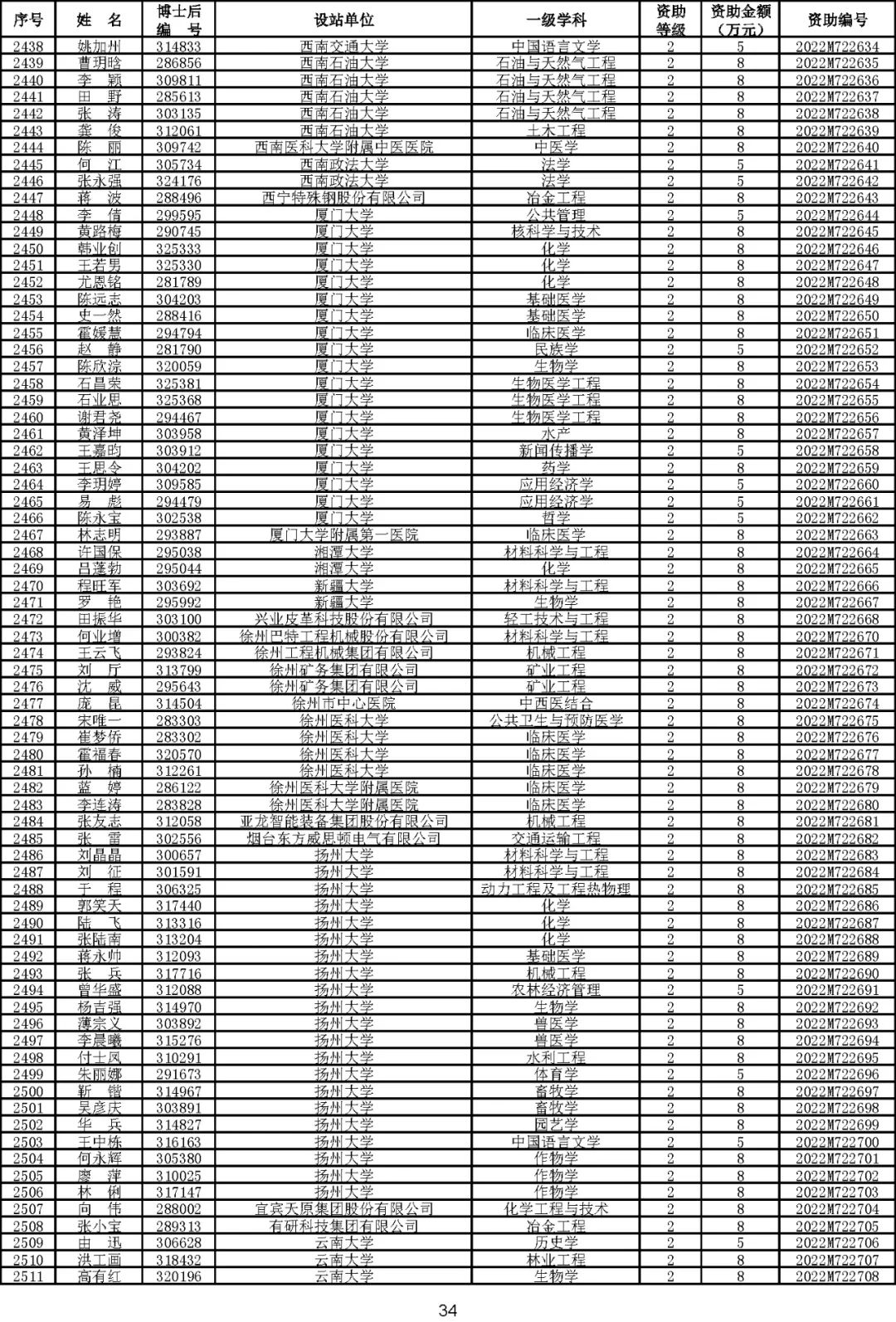 根据《中国博士后科学基金资助规定》(中博基字〔2020〕7号),经专家评审和评审结果公示,决定对3650名博士后研究人员予以中国博士后科学基金第72批面上资助(军队、国防科工等系统获资助人员不含,另行通知)。获资助人员名单详见附件。