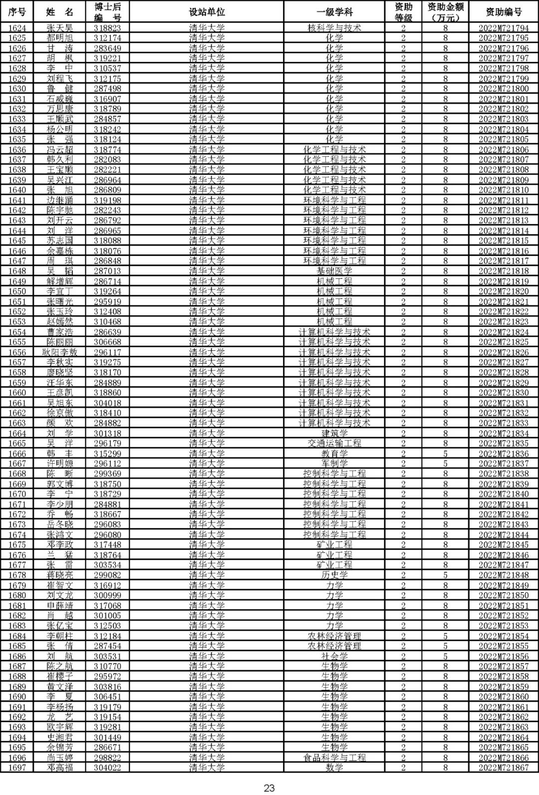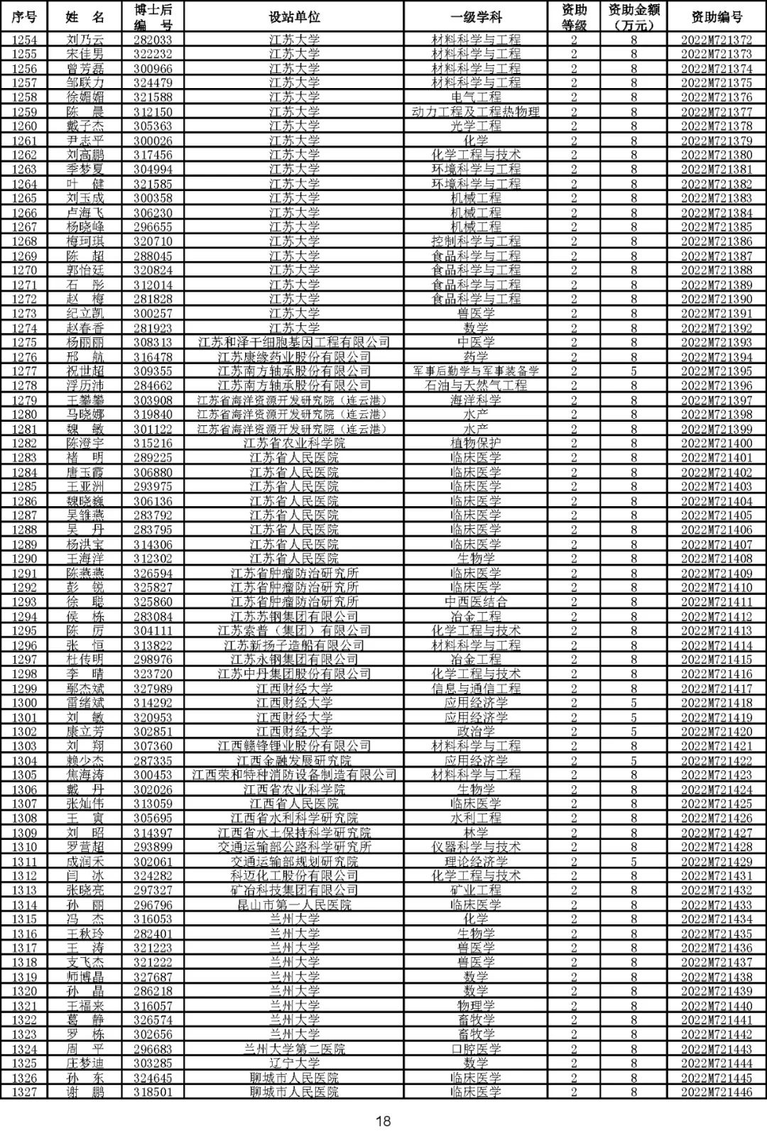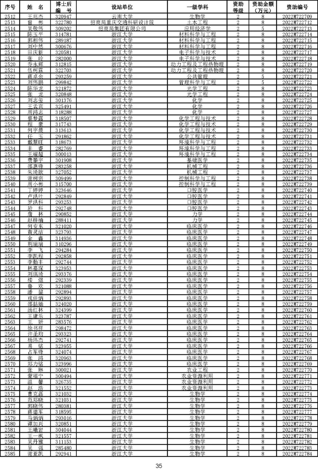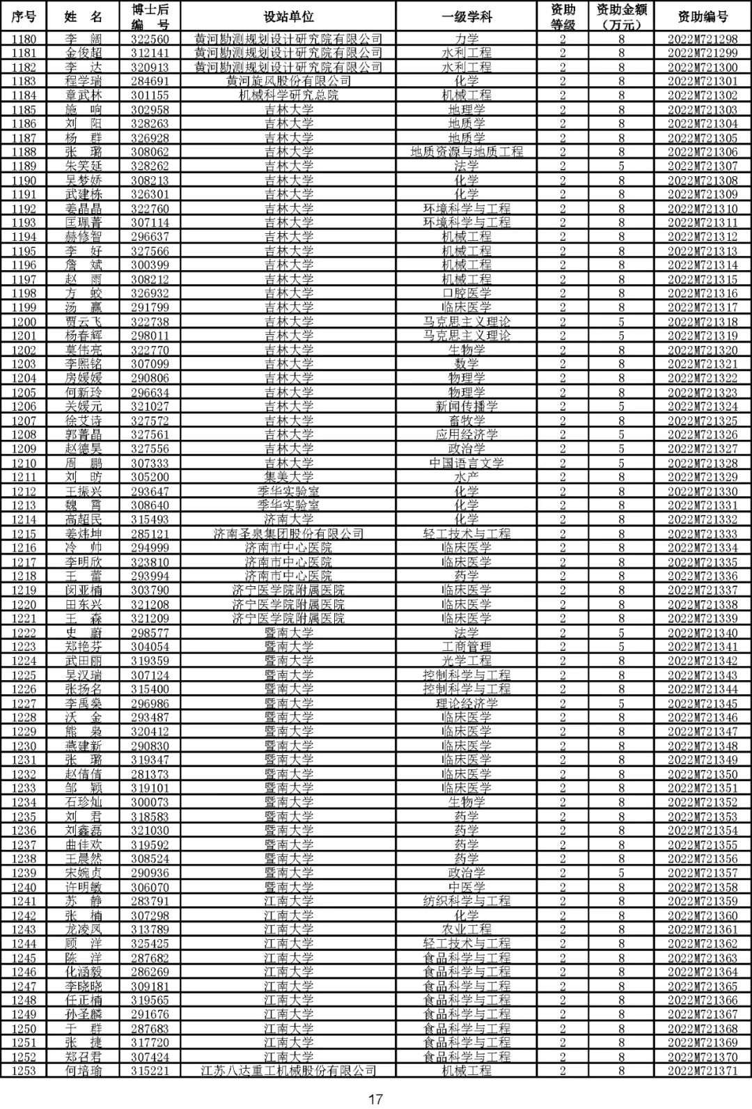 根据《中国博士后科学基金资助规定》(中博基字〔2020〕7号),经专家评审和评审结果公示,决定对3650名博士后研究人员予以中国博士后科学基金第72批面上资助(军队、国防科工等系统获资助人员不含,另行通知)。获资助人员名单详见附件。
