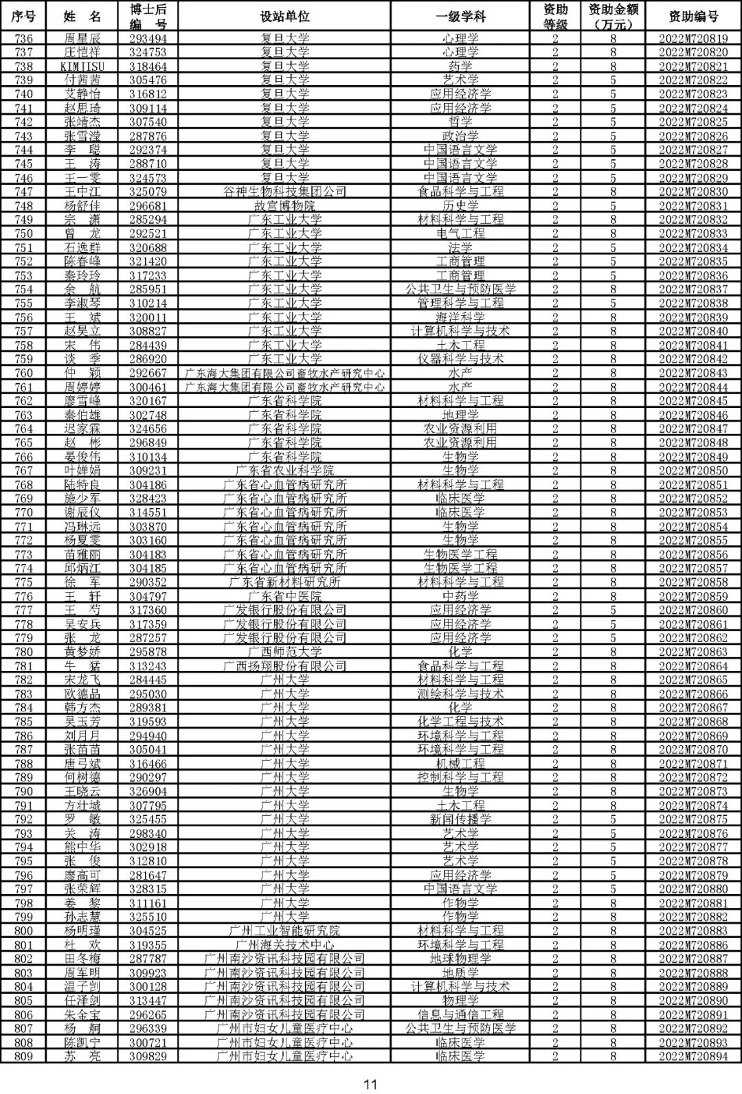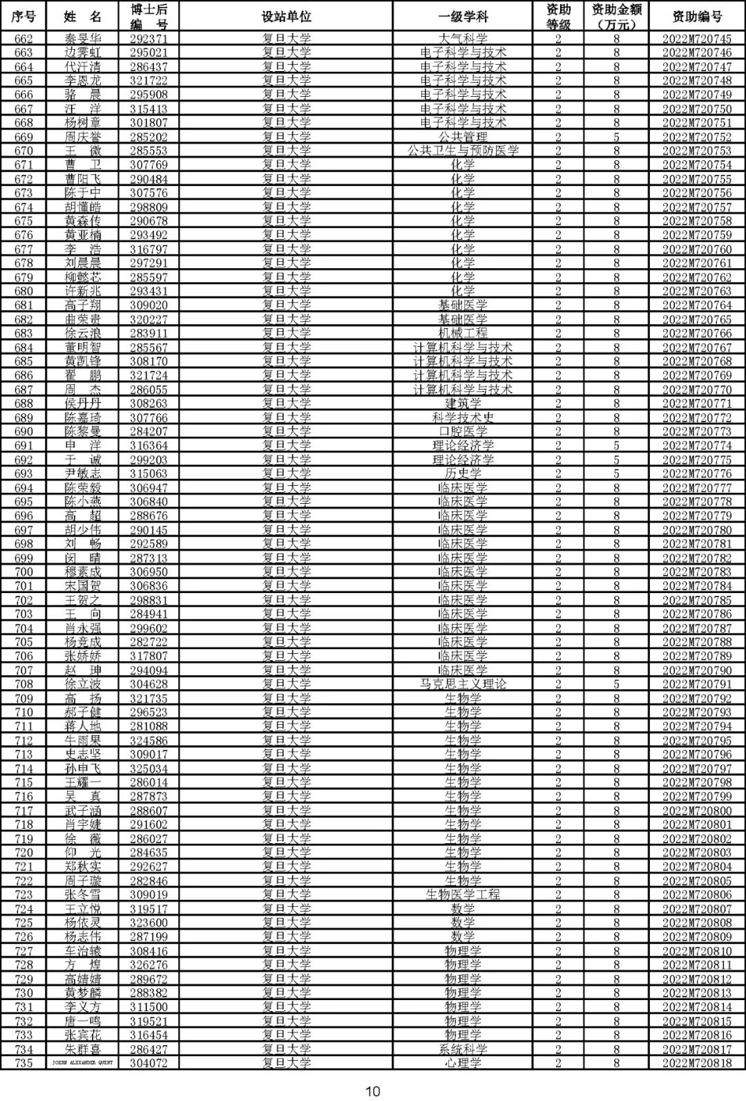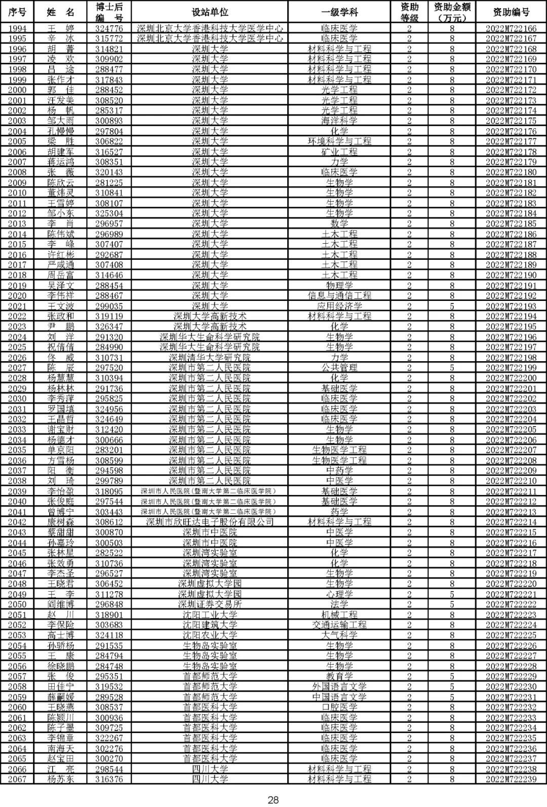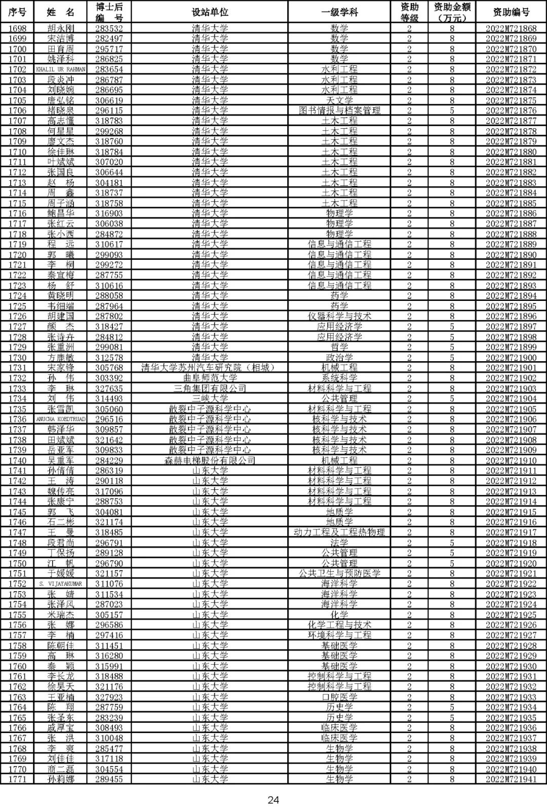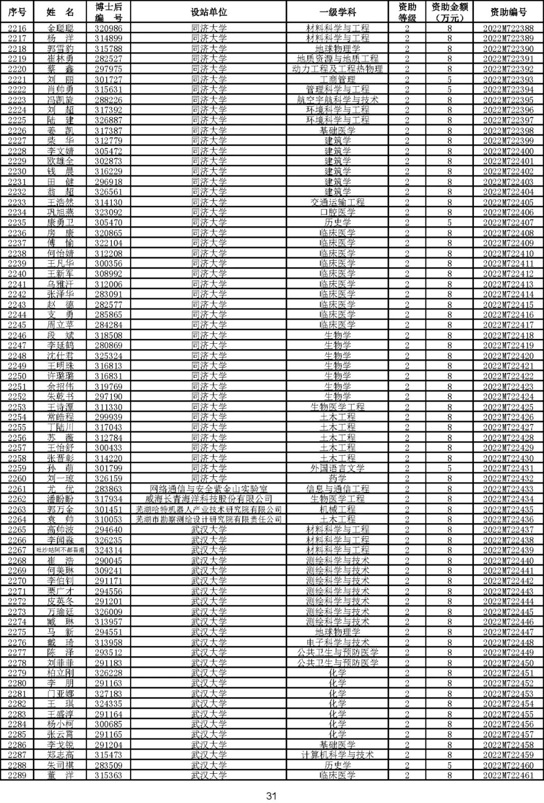根据《中国博士后科学基金资助规定》(中博基字〔2020〕7号),经专家评审和评审结果公示,决定对3650名博士后研究人员予以中国博士后科学基金第72批面上资助(军队、国防科工等系统获资助人员不含,另行通知)。获资助人员名单详见附件。