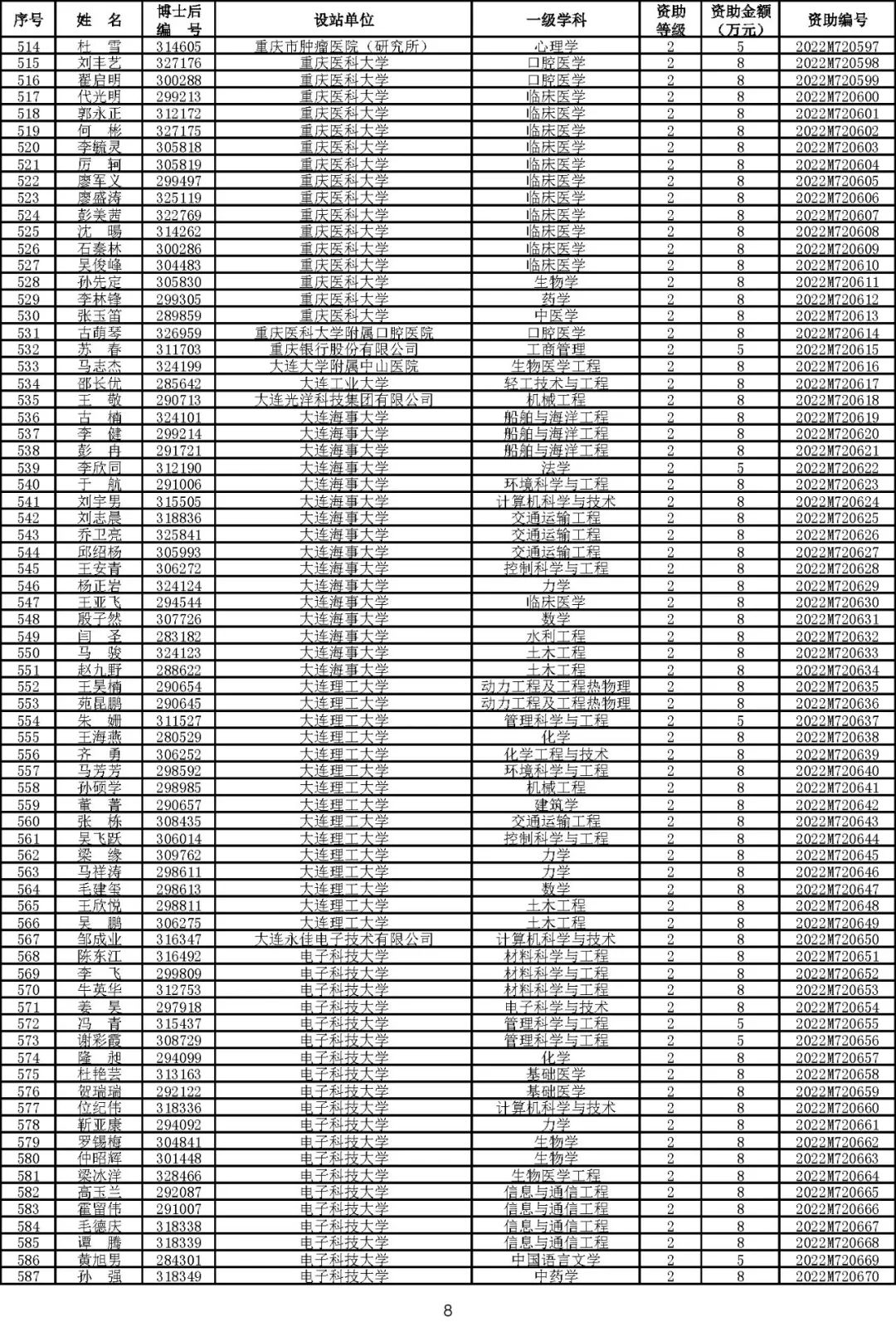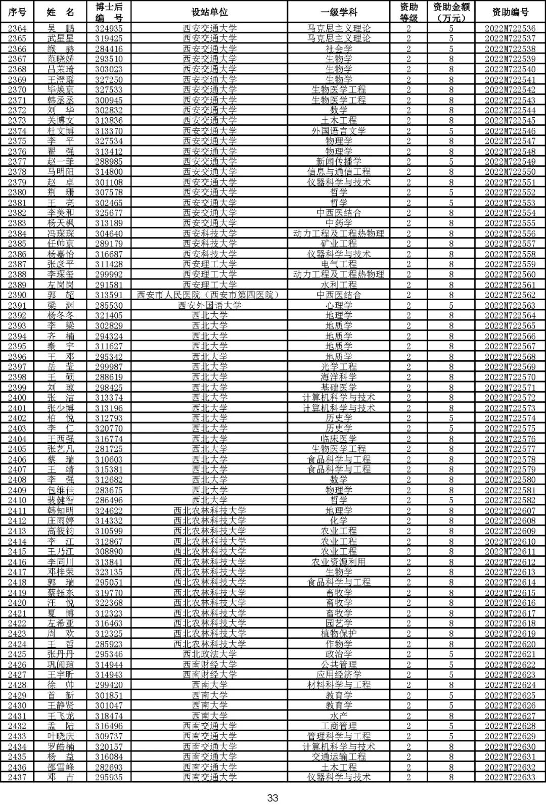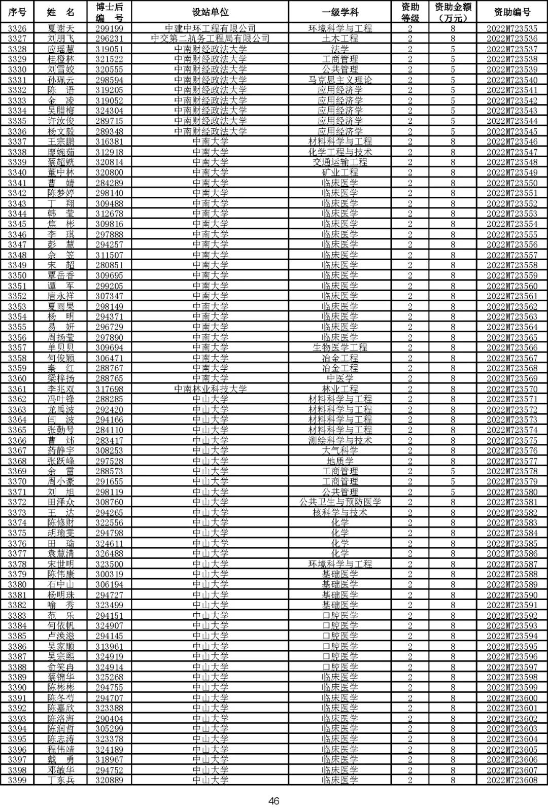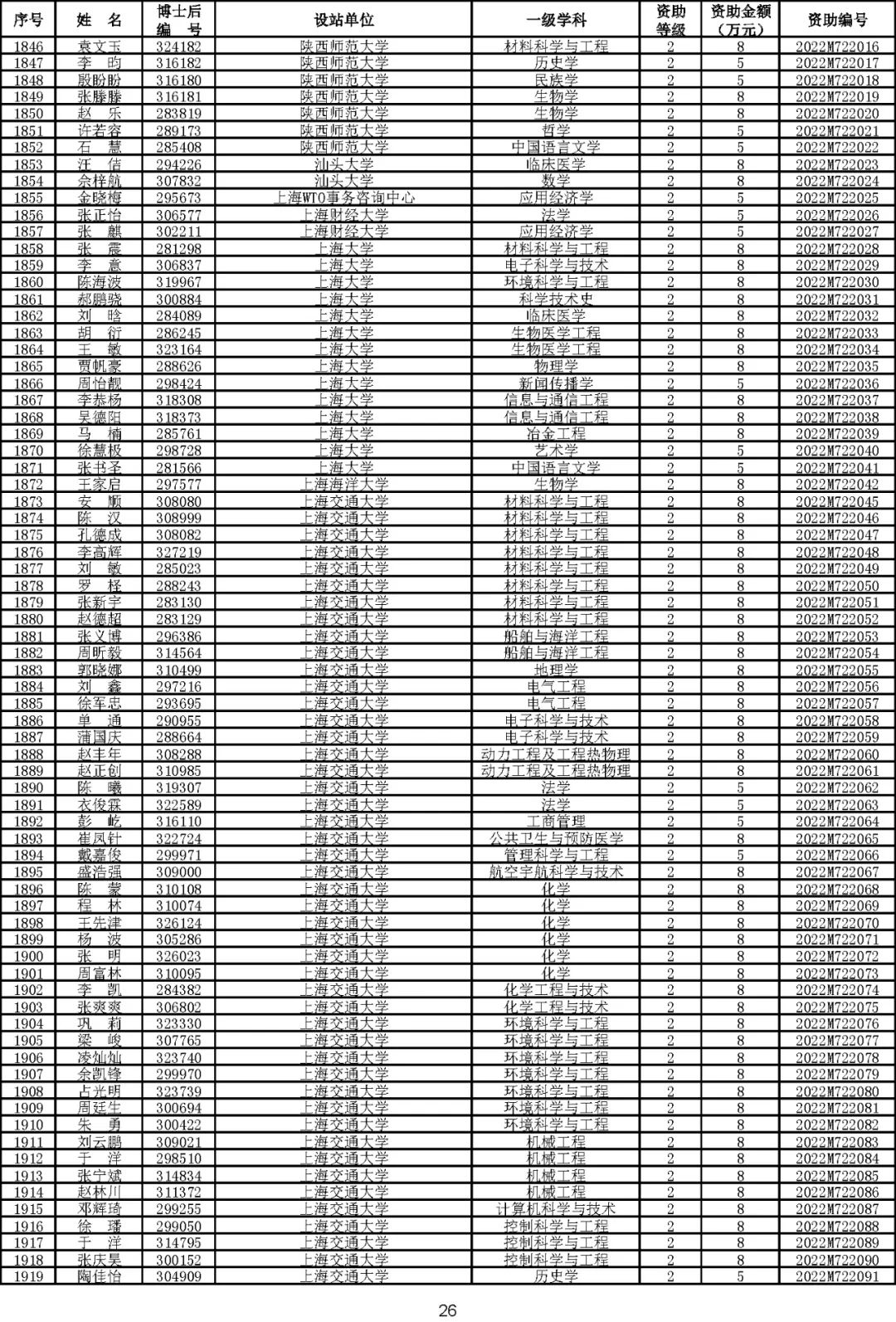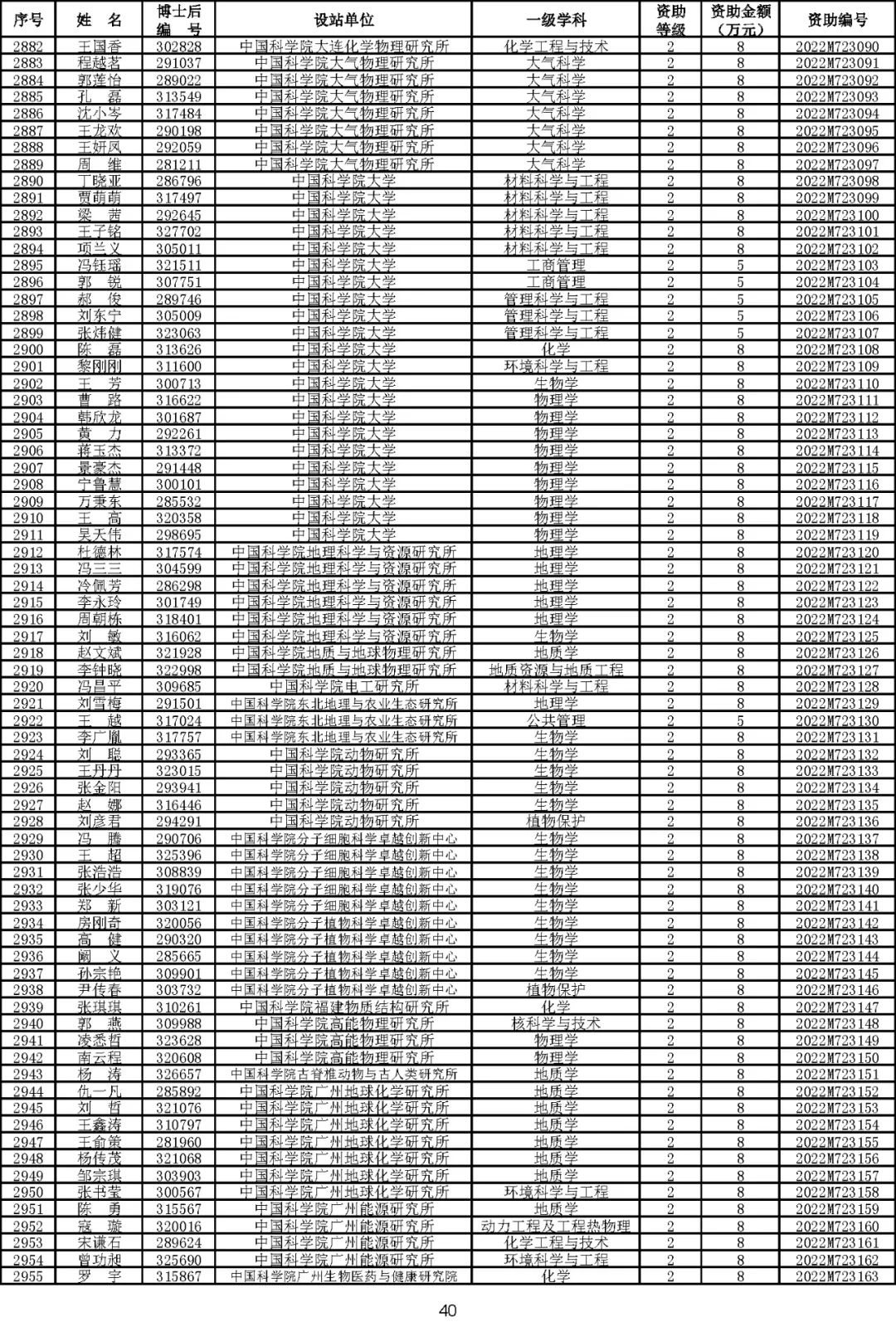 根据《中国博士后科学基金资助规定》(中博基字〔2020〕7号),经专家评审和评审结果公示,决定对3650名博士后研究人员予以中国博士后科学基金第72批面上资助(军队、国防科工等系统获资助人员不含,另行通知)。获资助人员名单详见附件。