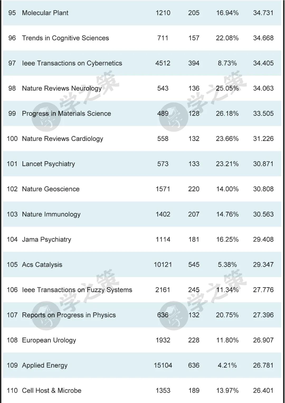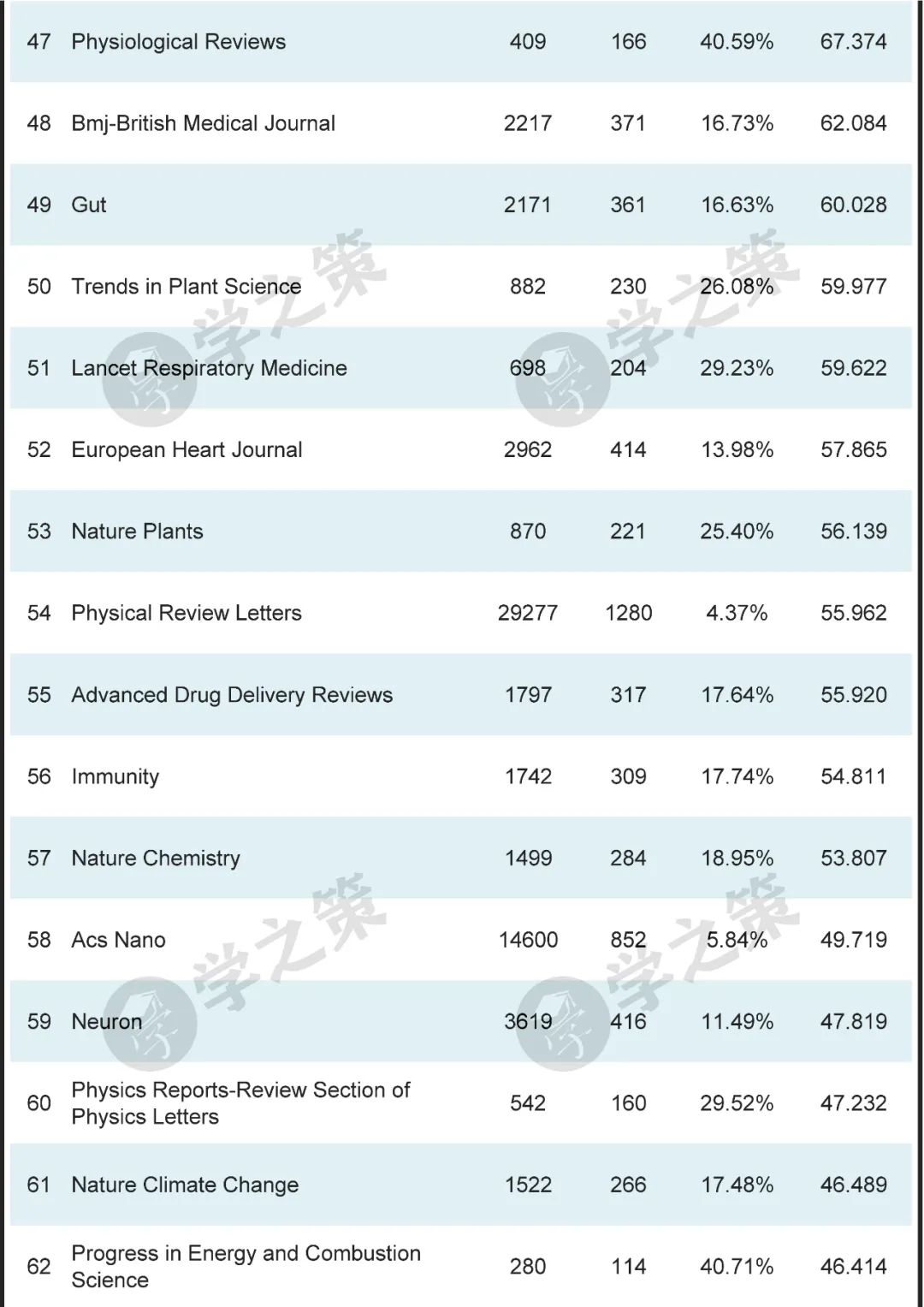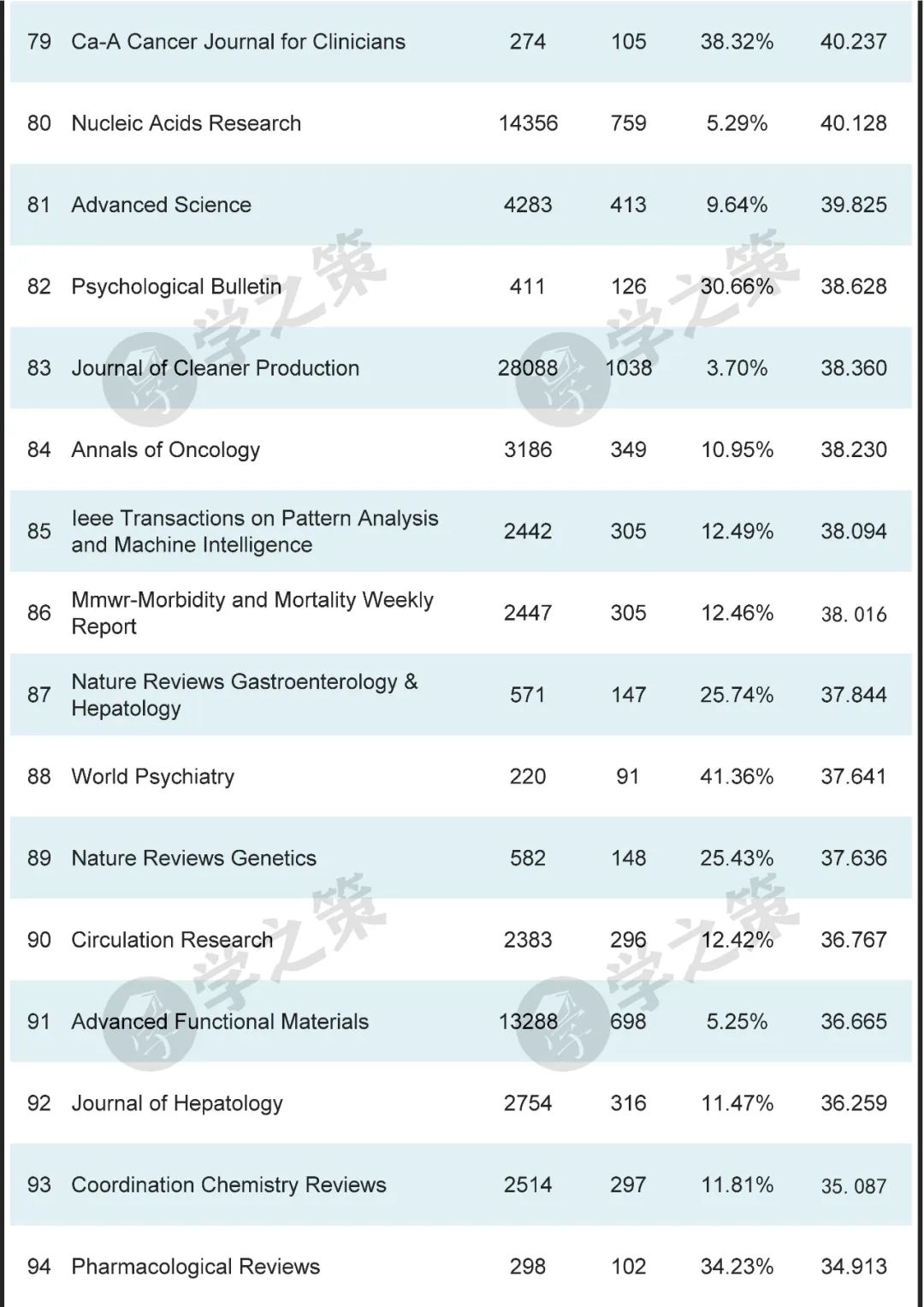 数十本Nature子刊基本都在前100之列。