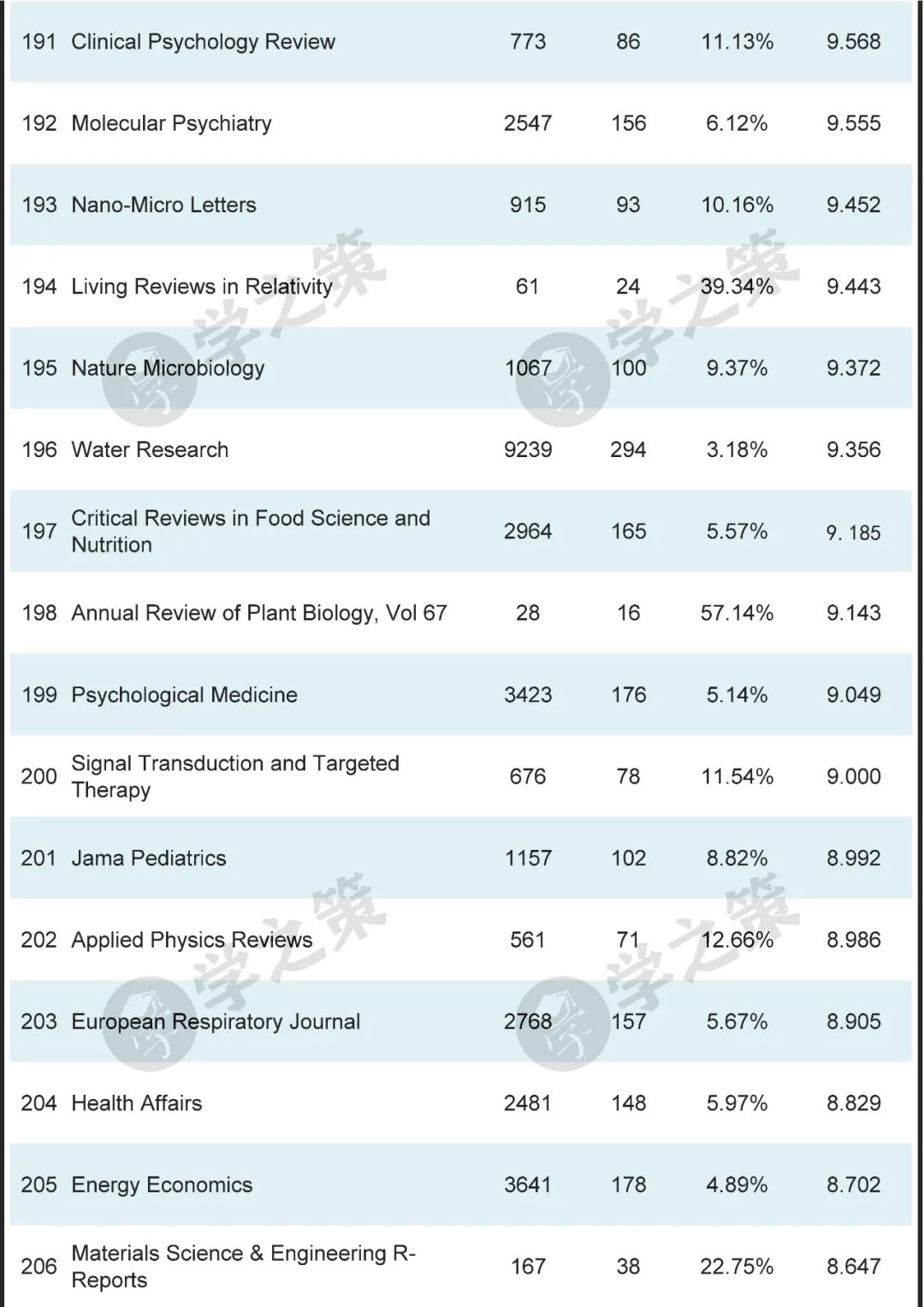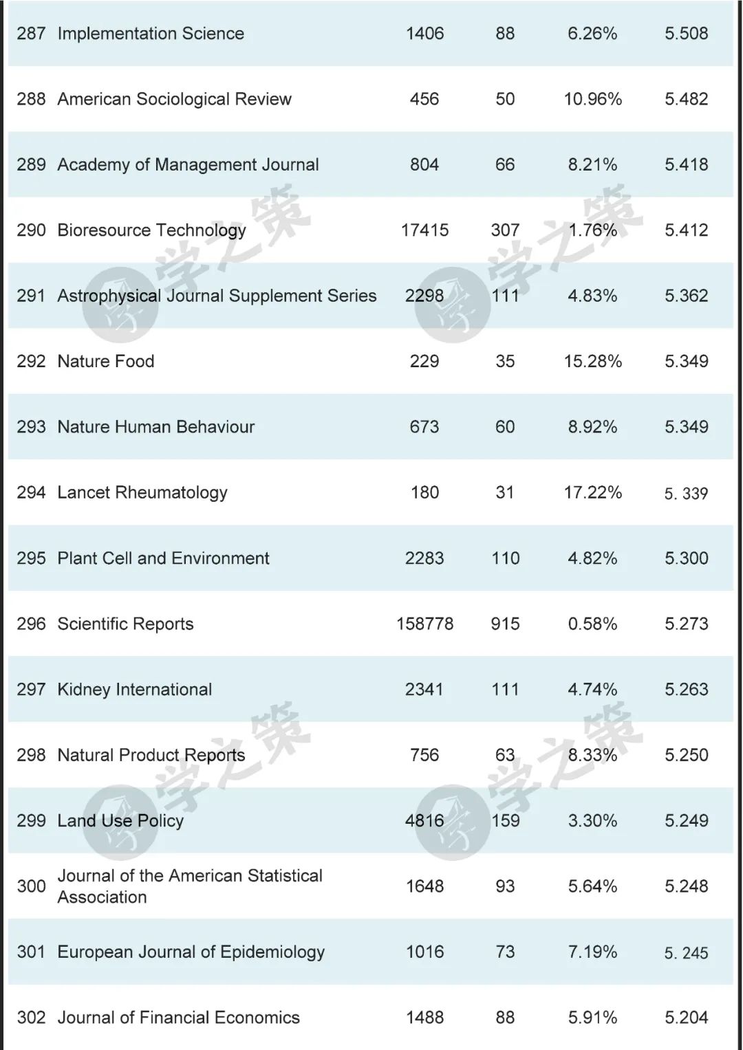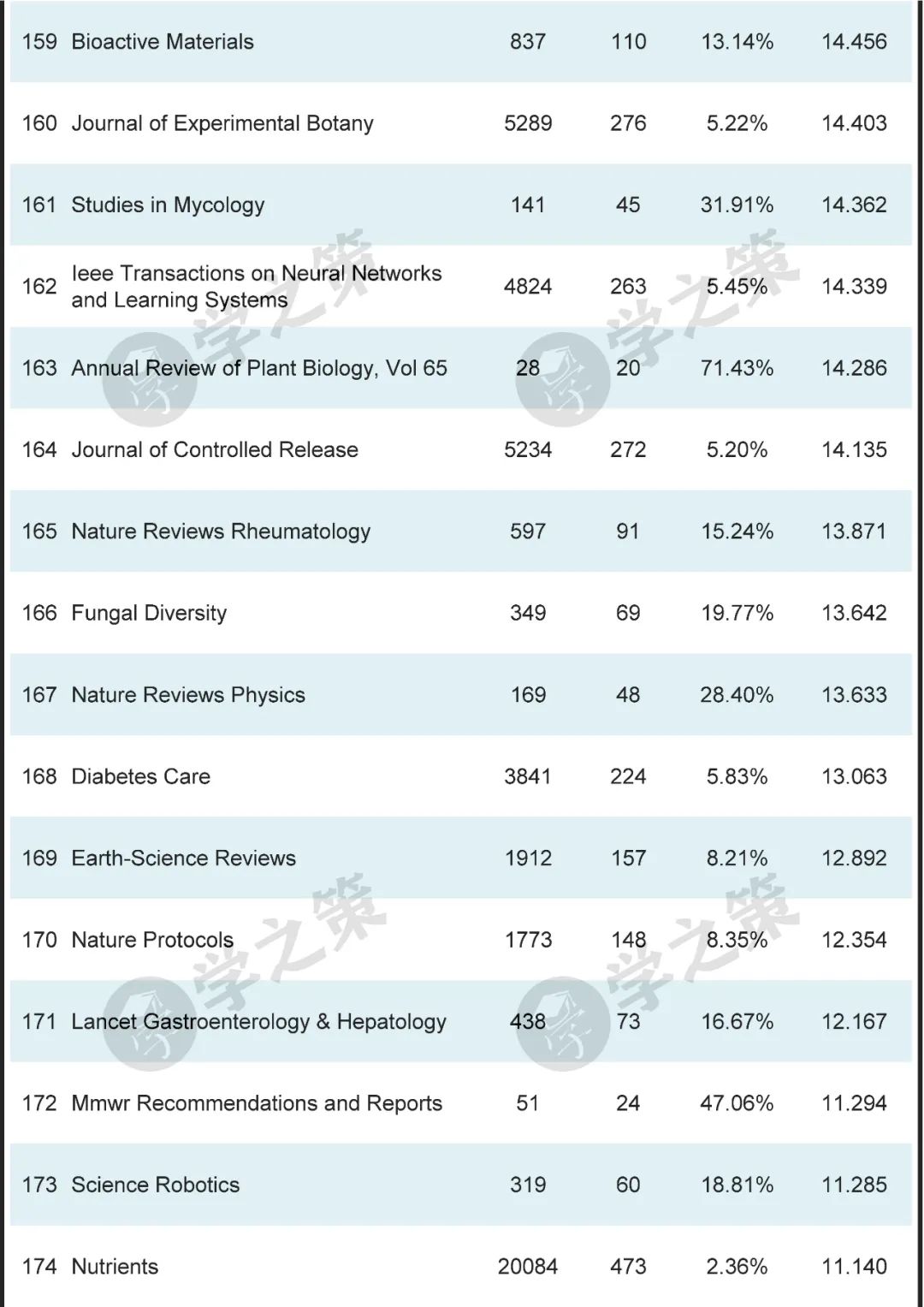 数十本Nature子刊基本都在前100之列。