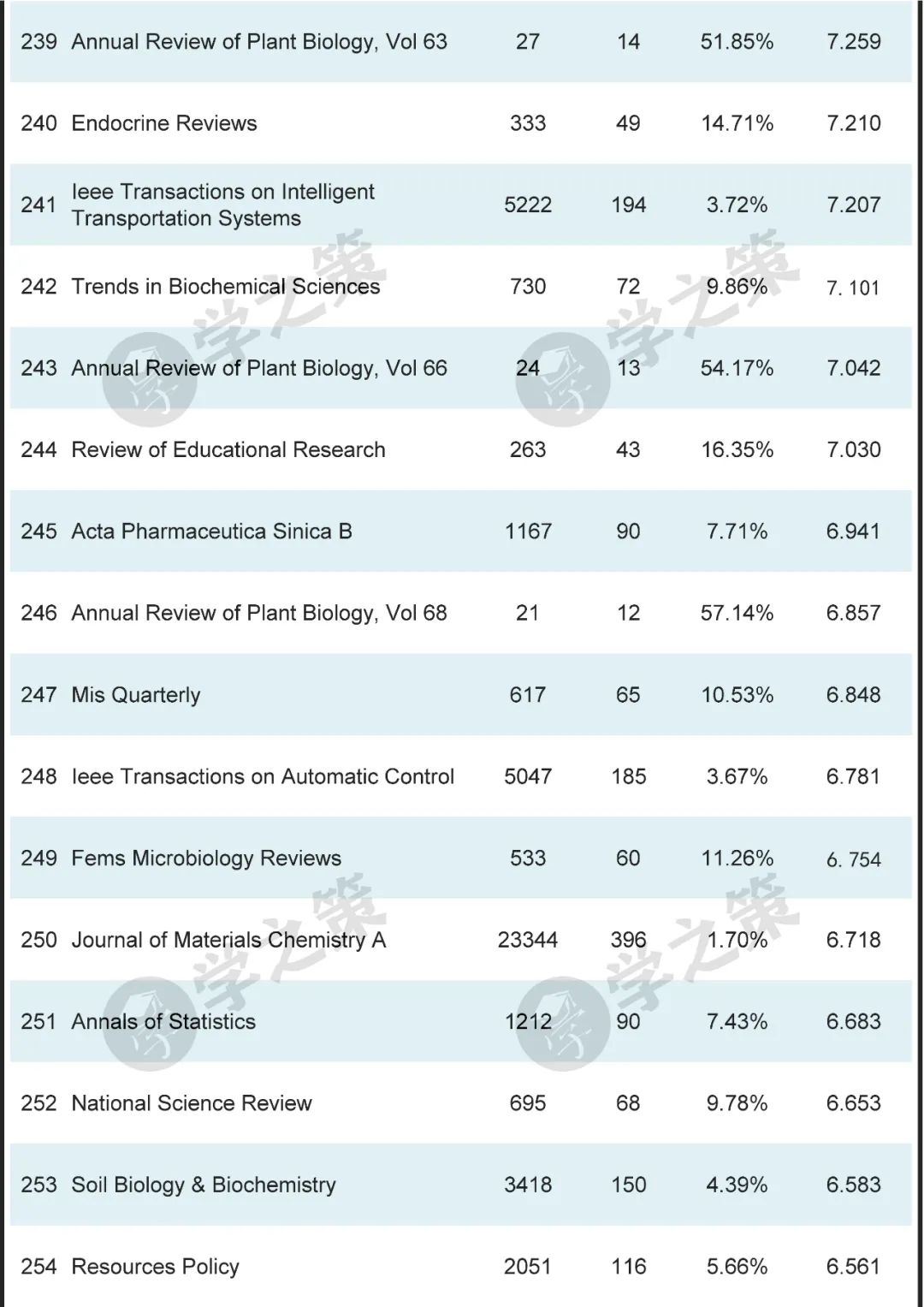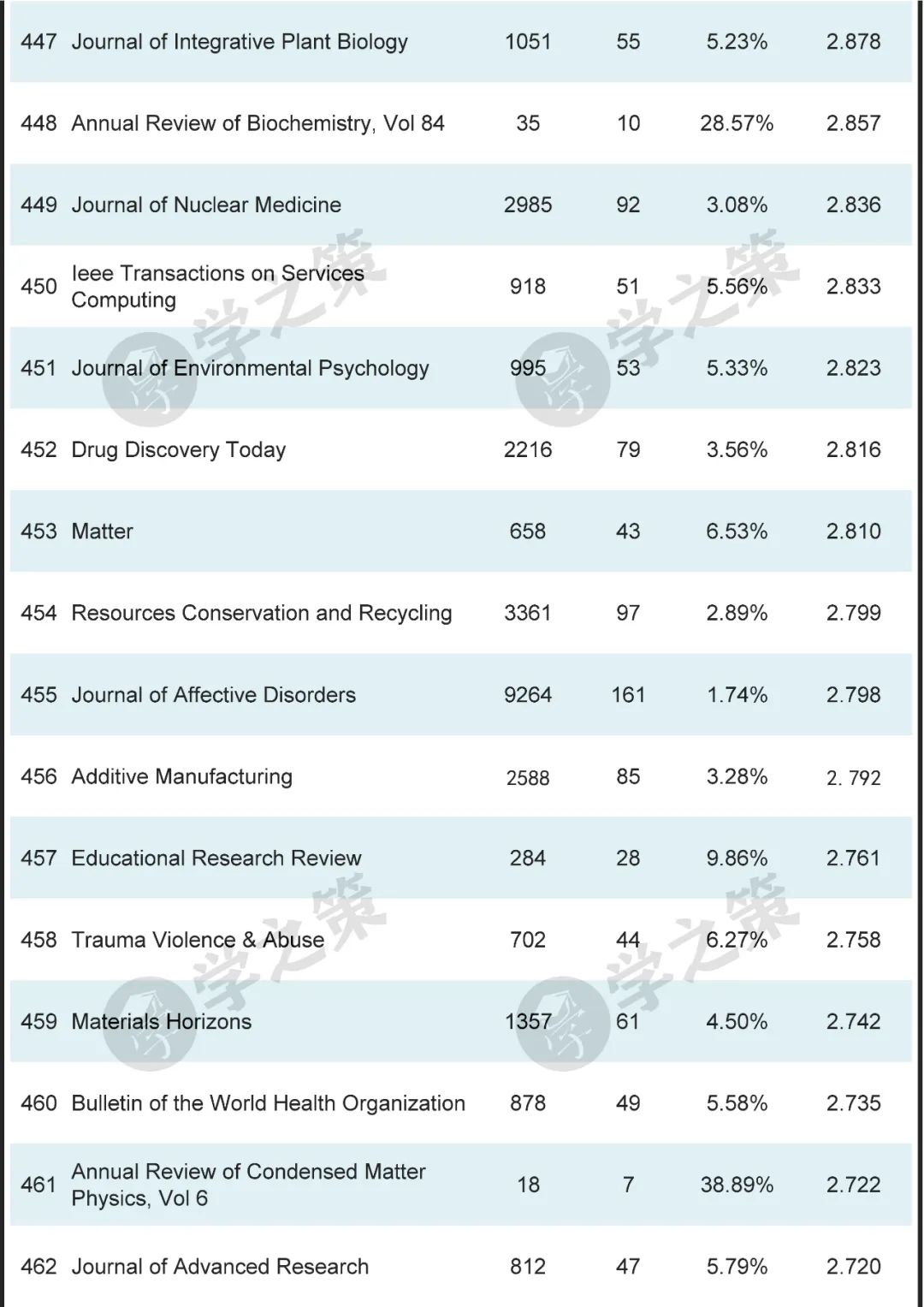 材料领域的顶级刊物Advanced Materials为第8位,Joule为第26位。