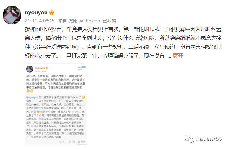 颜宁去年11月份的打疫苗经历:
